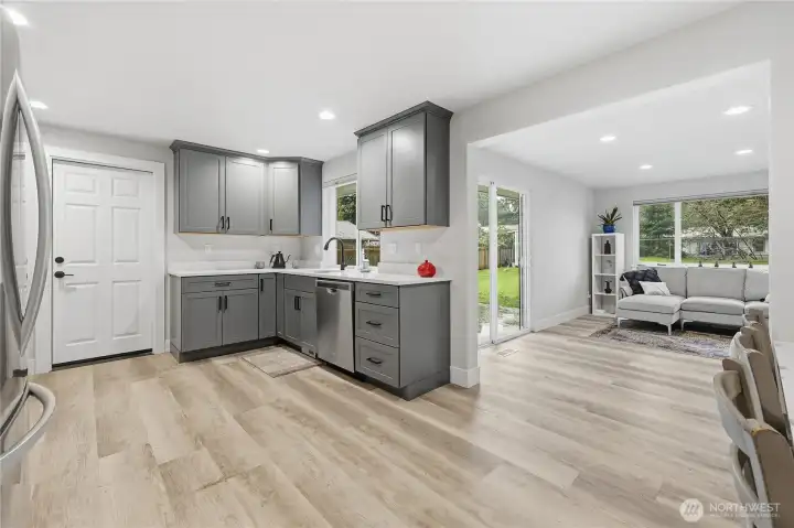 Welcome to this beautifully updated turnkey home in a quiet neighborhood, with the perfect blend of comfort & modern updates. As you enter, you are greeted with a bright, open living room with large windows that fill the home with natural light. Two large bedrooms and an updated guest bath are located off the living room. The private primary bedroom sets at the back of the house with it's own adjoining bath featuring a beautiful tile shower with glass doors. The kitchen has been updated with beautiful quality cabinets, new countertops and SS appliances. The spacious kitchen has an eating bar and access to the garage. The large family room offers a flex space for dining and/or additional entertaining and access to the patio. Step out onto the patio to enjoy peaceful views of the fully fenced backyard, perfect for BBQs, pets, or a future garden. Large garden shed is large enough for an artist studio or hobby room. Additional shop space available in the attached garage with a built in work bench. Utilities include a Gas furnace and heat pump with AC. Home is wired for a generator. Close to South Kitsap regional park and Marcus Whitman JH. Easy access to Hwy 16, Southworth ferry, shopping, schools, shipyard all of the city conveniences!