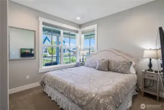 The one you've been waiting for! This gorgeous 2-story, 4-bdrm, 3-bath modern vacation home is a perfect place for lasting memories. Having the convenience and safety of the Vineyard Park as your yard makes this home one of the most desirable locations at The Lookout. Enjoy relaxing evenings around the fire pit while watching people play in the park without having to worry about incoming traffic. The heated wrap-around deck allows enjoyable views from any angle year round. Centrally located between both pools and the numerous amenities the community has to offer. This turnkey home sits on a corner lot, comes fully furnished with 3 designated parking spots plus EV charging. Don't miss this rare opportunity to live on the Vineyard Park!