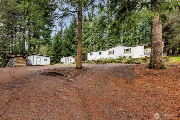 Discover rare privacy and potential on 5 tranquil acres in Camas, Washington. Tucked away in a serene setting, this 1,848 sq. ft. double-wide manufactured home offers 4 bedrooms and 2 bathrooms and presents an exceptional fixer or teardown opportunity. The property provides two potential build sites, making it an ideal canvas for redevelopment or future investment. Enjoy a gated entry, RV parking with hookups, and the peaceful ambiance created by nearby creeks. Conveniently located less than 10 miles from downtown Camas, this secluded retreat offers a unique blend of privacy, natural beauty, and opportunity.