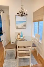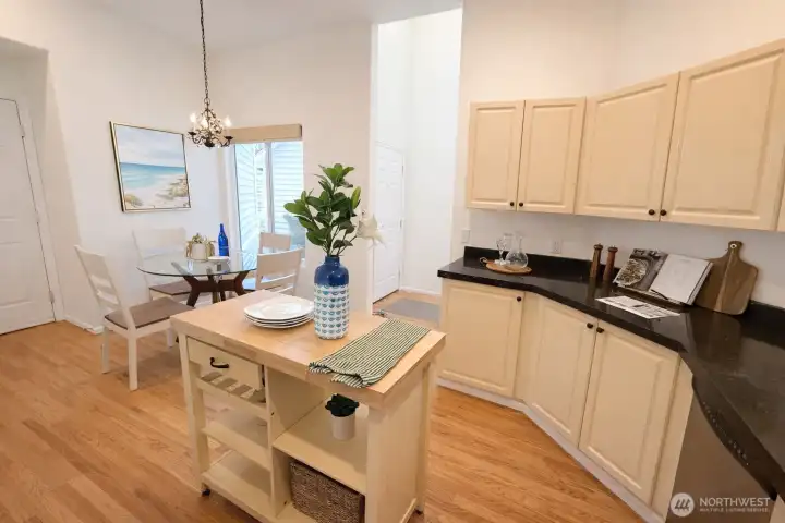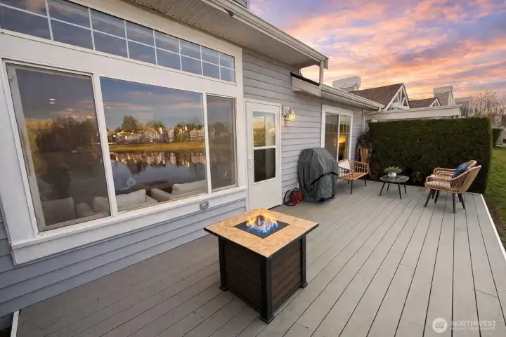 Welcome to the prestigious gated community of Marina Pointe at The Lakes, where privacy, natural beauty, and refined comfort come together. This impeccably maintained single-level residence offers elegant lakeside living with soaring vaulted ceilings and freshly polished hardwood floors throughout the main living areas. From the moment you step inside, a large picture window in the living room frames beautiful views of Ruby Lake, filling the space with natural light. The living room is anchored by a large gas fireplace, creating a warm and inviting focal point. Just off the living room, a spacious private deck provides the perfect place to relax while enjoying peaceful lake views. The kitchen blends style and function with striking crushed-glass countertops, abundant cabinetry, and a charming breakfast nook overlooking the water. A removable butcher block prep station beside the stove offers flexible workspace for cooking and entertaining. The primary suite features a large window overlooking the lake, a cozy electric fireplace, a cedar-lined walk-in closet, and a peaceful retreat atmosphere. Additional highlights include newly cleaned carpeting, a newer furnace, central A/C, insulated garage doors, ADA-accessible features for ease of living, nearby golf courses, scenic walking and biking trails, convenient freeway access, and proximity to the newly expanded regional light rail system.