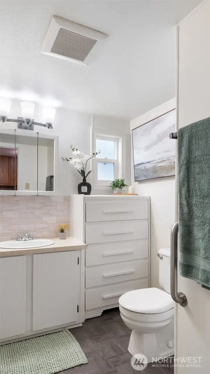 Cozy and comfortable, this updated home is move-in ready with $34,000 in repairs and updates recently completed! BRAND NEW ROOF with 20-year warranty! Modern luxury vinyl plank flooring and fresh paint throughout welcome you into your new home. The large kitchen has an ABUNDANCE of cabinets and a convenient dining area. The living room and primary bedroom are spacious, and the second bedroom makes a perfect office or hobby room. The covered outdoor deck is perfect for a summertime gathering. A large shop/workroom off the deck is perfect for projects and storage, plus there is an additional storage shed outside at the back of the home. The clubhouse brings neighbors together with a library, exercise room, pool table, and weekly community meals. Silver Lake’s trails, playground and picnic spots are just steps away. Low park rent of $865 includes water, sewer, and garbage - affordable living with heart! 55+ community, minimum incone requirement is 3 times the rent. Silver Shores is a lovely, well-managed community, a perfect place for your retirement! Financing for the home is available through Sound Credit Union.