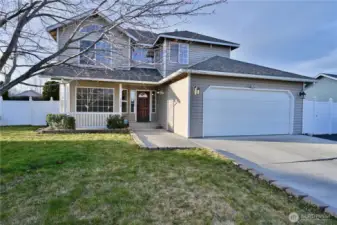 Welcome to this beautifully maintained two-story 4-bedroom, 2.5-bath home offering comfort, style, and exceptional outdoor space. A charming covered front porch leads into a grand entrance with soaring vaulted ceilings, setting the tone for the warm and inviting interior. The spacious living room features a cozy gas fireplace and flows seamlessly into the updated kitchen, complete with an island, new appliances and stunning new quartz countertops. Upstairs, all four bedrooms are generously sized, including a relaxing primary suite. The home is designed for both convenience and efficiency with vinyl siding, a water softener, and thoughtful updates throughout. Step outside to a truly impressive private backyard—it is large, fully fenced and full of mature ornamentals. Enjoy raised garden beds, a large covered back patio perfect for year-round entertaining, and lush landscaping supported by underground sprinklers. For added versatility, the property includes powered RV parking, offering space for toys, travel, or extra storage. There is also a tool shed and a Simply Safe alarm system. This home blends modern upgrades with exceptional outdoor living, creating a move-in-ready retreat with room to grow, relax, and enjoy.