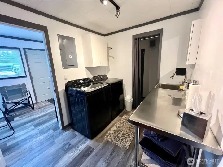 Welcome to easy coastal living in Diamond Point, Sequim! Nestled in a sunny and social 55+ community, this leased space offers a paved pad with room for a large 5th wheel. The property also includes a fully finished, outbuilding with power and water—featuring a washer and dryer, ¾ bath, refrigerator, and everything you need to set up a kitchen, plus sleeping loft. Whether you envision it as a guest space, hobby studio, or office, the options are endless.The $175/month HOA keeps life simple, covering garbage, water, sewer, laundry, clubhouse access, and maintenance. Residents also enjoy private beach access, a boat launch, and acres of trails at nearby Miller State Park. An affordable and flexible way to enjoy the Olympic Peninsula.