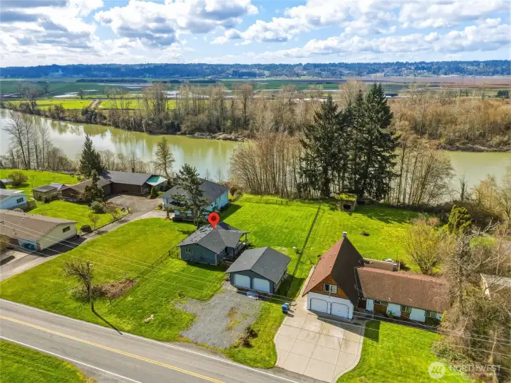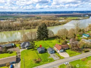 This charming bungalow delivers big lifestyle appeal on a rare 1.43-acre, flat riverfront parcel along the Snohomish River, outside the flood zone. Enjoy peaceful mornings and glowing sunsets from the covered front porch, surrounded by the open valley & river sounds below. The property offers exceptional usability - expansive level land, a detached two-car garage, and abundant space for RVs, storage, and recreational toys. Just minutes from historic downtown Snohomish, you’ll love the easy access to shops, dining, trails, and Hwy 9. Watch parachutes & gliders drift over head from Harvey Air Field and savor the quiet, rural feel without sacrificing convenience. With an installed 4-bedroom septic system, the opportunities are wide open: Add onto the existing home, convert to a duplex/condo, build your dream home, or explore income-producing options such as rental, Airbnb, or VRBO. Truly a rare blend of privacy, usability, and location—this is Snohomish living at its most inviting.