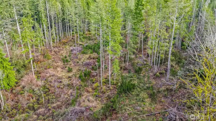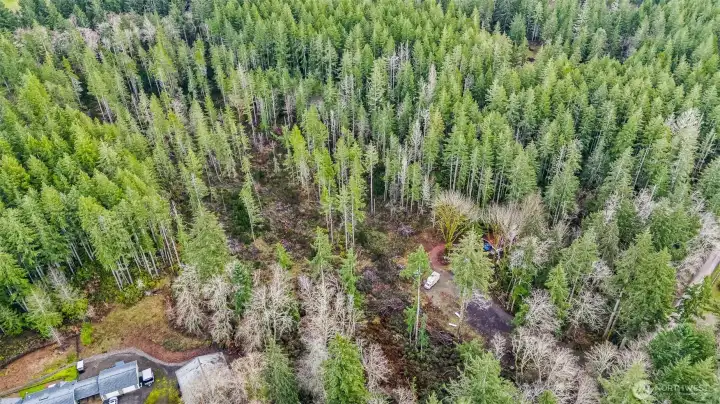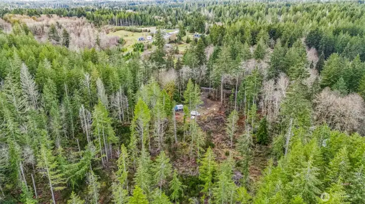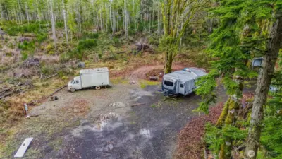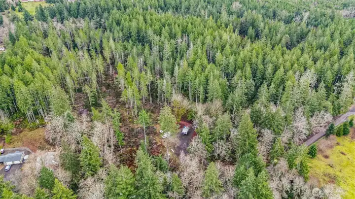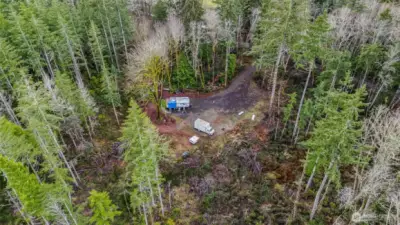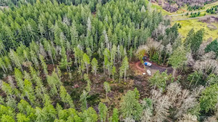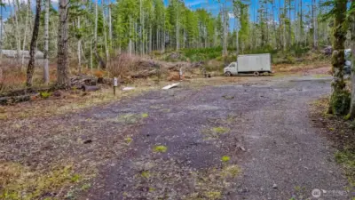Parcel #0022251009 – Pierce County. 10 private acres, mostly wooded parcel offers a peaceful natural setting with plenty of room to create your dream retreat, build a future home, or enjoy recreational use. The property already features electricity on site and three RV hookups, making it ideal for weekend getaways, camping, or extended stays. A partially cleared area provides a potential homesite. The entrance is highlighted by a decorative iron gate.