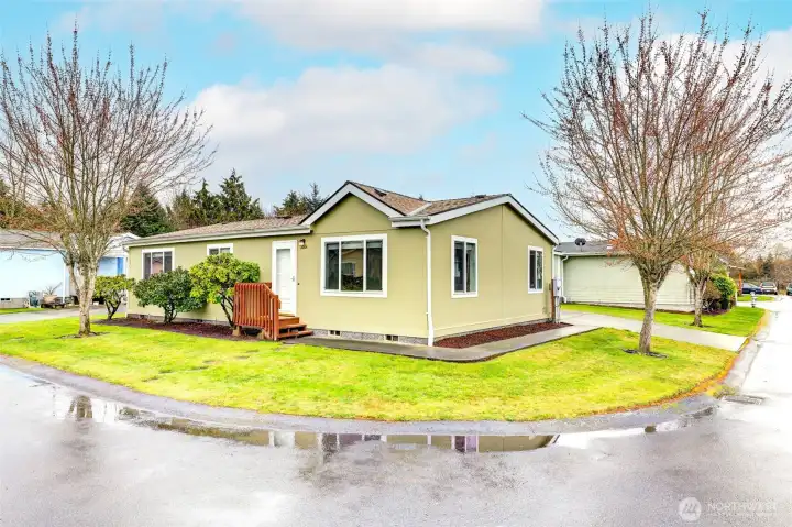 Well maintained 1188 square foot manufactured home on its own lot built in 2006, recently updated with new flooring, fresh paint, and a one year old new roof! Open-concept living with vaulted ceilings creates a bright, spacious feel and room for your furnishings. Open kitchen includes all appliances and there's also a laundry room with washer and dryer that stay. Walk in pantry and plenty of kitchen cabinets for storage. Spacious primary bedroom plus 1 additional large bedroom and 1.75 baths. Forced-air heating and a two care garage. Convenient Tacoma location minutes to schools, shopping, dinning, and everyday amenities. HOA handles yard care and what used to be a 55+ community is now open to all ages. This home is perfect for those looking for a move-in ready home option!