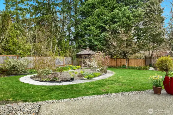 Located in the sought-after Hampton Woods community, this beautifully updated Murray Franklyn home offers extensive recent improvements throughout. Updates include all-new windows, a renovated primary bathroom, refinished hardwood floors, new carpet, fresh interior paint, custom lighting, an updated powder room and more! The spacious layout features four large bedrooms on one level and generous living spaces including formal living and dining rooms, plus a comfortable family room. The kitchen offers newer appliances and is well suited for everyday living and entertaining. Step outside to a private backyard oasis featuring stunning pesticide-free gardens with mature fruit trees including fig, apple, and pear, along with raised garden beds filled with a variety of berries. A gardener’s delight with potting shed, potting sink, and gazebo. Three seasons of blooms create beautiful color throughout much of the year. Major system upgrades include a newer HVAC system, hot water tank, upgraded insulation, Presidential roof, and new garage doors with ultra quiet garage door openers with built-in Wi-Fi and myQ technology. Situated on a quiet cul-de-sac, the Hampton Woods community offers resident amenities including tennis courts, basketball court, park, and playground just down the block. Top Rated Lake Washington School District. Short walk to Mead Elementary. Convenient access to the newly opened light rail provides easy commuting to Bellevue and Seattle.