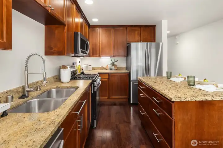 Amazing zero-lot-line home on protected greenbelt with private fenced yard and no HOA dues. Modern 2009 construction, the spacious 1600 SF craftsman townhome features 3 bedrooms and 2.75 baths (one full bath, two 3/4). Primary suite features soaring vaulted ceilings, luxury attached bath & walk-in-closet. The 2nd upper bedroom has airy vaulted ceilings with adjacent full bath. Top floor full size washer/dryer stay with home. The contemporary floor plan also touts a large first-level ensuite bedroom bath combo, but large enough to serve as a family room, home office, or rental/roommate suite. Main level features hardwood floors and living room with territorial views of trees and greenbelt, no neighbors in sight. Modern spacious kitchen is packed with counter space and ample cabinets. Movable kitchen island perfect for food prep or an eating bar. Secure attached garage. Awesome West Seattle location just minutes to renowned Alki Beach and the popular California Ave restaurant and retail area. Located 4 minutes to Whole Foods, 8 miles to the Amazon, Google and Facebook offices of South Lake Union. Situated on the RapidRide H Line, a super quick bus commute to South Lake Union. Also, less than 20 minutes from Seatac Airport. Across the street from the quiet Louisa Boren Stem K-8 elementary. Built-green with hot-water radiant heating, no furnace for low utility bills. New tankless water heater, new paint, home is well maintained and move-in-ready. No rental restrictions.