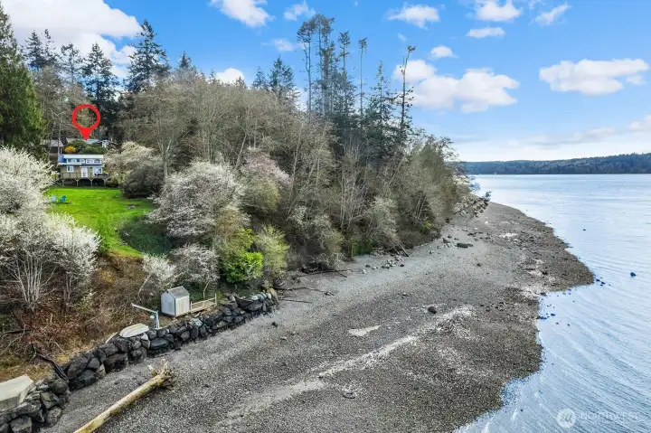 Discover the perfect west-side Vashon Island getaway in this charming 1-bedroom waterfront cabin, set on 90 feet of coveted Colvos Passage shoreline. Enjoy a true maritime lifestyle with your own davit, moorage, and endless opportunities for boating, crabbing, fishing, and beachcombing right from your front yard. This home features bamboo flooring, heated bathroom floors, newer appliances, Hardi-plank siding, and a durable metal roof. The airy upper-level bedroom offers cooling A/C and serene views, while the expansive wraparound deck provides exceptional outdoor living and space to gather. An additional bunkhouse and an outbuilding with a workbench create flexibility for guests, hobbies, and storage. Whether you’re seeking a weekend retreat or a simple island escape, this is your chance to experience the magic of Colvos Passage—quiet mornings, sparkling sunsets, and the peaceful rhythm of the Sound. Come make this your waterfront sanctuary.