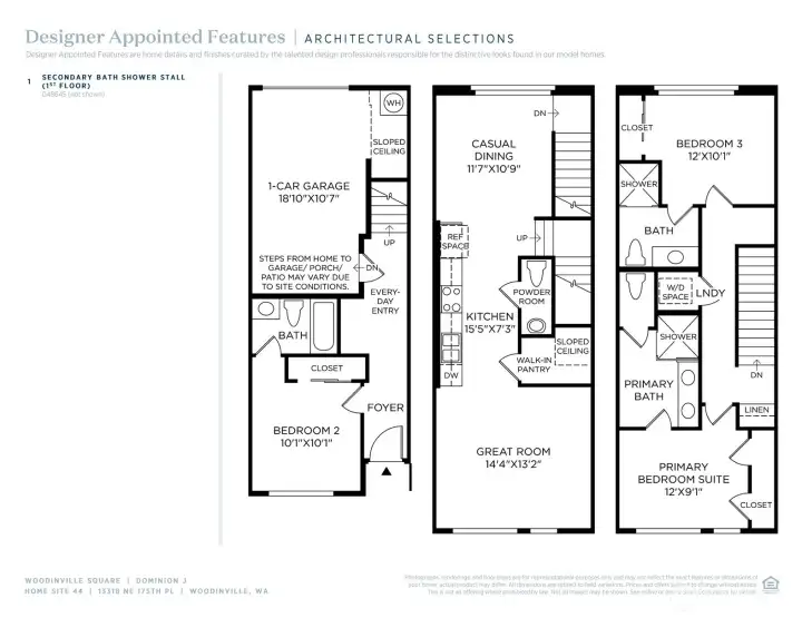 Experience refined urban living - Toll Brothers presents Woodinville Square - Luxury townhomes located in the heart of downtown Woodinville, walkable to the new Schoolhouse District & adjacent access to the growing 42-mi Eastrail trail system! The Dominion offers an idyllic blend of functionality and elegance within its three-level floor plan. The open-concept main living level seamlessly connects the great room and casual dining area to the modern galley-style kitchen, w/clean lines & high-end finishes including white painted cabinetry, quartz 3cm slab countertop, Kitchenaid appliances & oversized walk-in pantry. Upstairs, the luxurious primary bedroom suite features a spa-like private bath complete with a dual-sink vanity, luxe shower w/frameless glass enclosure and private water closet. Also on the third floor is a secondary bedroom with a private bath, while another secondary bedroom with a private bath is conveniently located on the first floor off the foyer. Additional features of the home include a convenient everyday entry on the first level, a second-floor powder room, bedroom-level laundry, and plenty of storage throughout. Modern finishes in a warm contemporary palette. PRIME LOCATION: walkable to retail, wine-tasting, dining & more! If represented by broker, must accompany/register @1st visit.