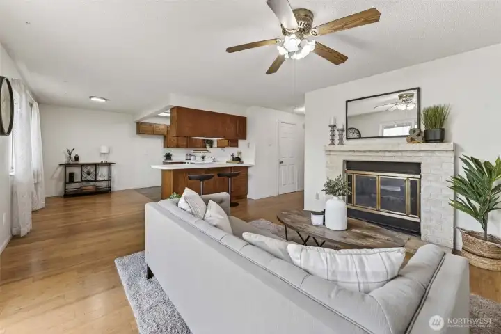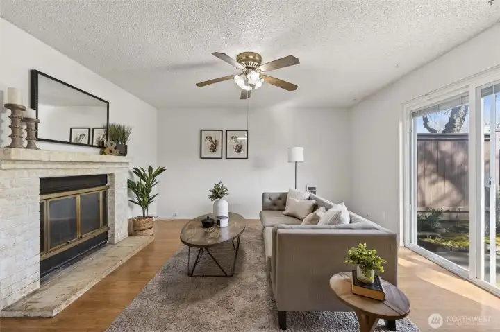 Single-level living with the space, privacy, and updates that are hard to find at this price point. Inside, the open layout features prefinished hardwood floors, a wood-burning fireplace, and a living room that flows right out to a private backyard Patio. Mature trees and a tall hedge make the outdoor space feel like a genuine retreat. The updated bathroom has fresh finishes with walk-in tub, and new windows throughout bring in great natural light. The kitchen offers generous cabinet storage and counter space. Community amenities through the HOA include a pool, spa/hot tub, tennis and basketball courts, and a meeting room. Location is a standout. You're in the heart of Salmon Creek's growing corridor, close to PeaceHealth hospital, dining, and retail, and positioned right between I-5 and I-205 for an easy commute anywhere in the metro. Two large bedrooms. One beautifully updated bath. A backyard that feels private. And a community with real amenities. Come see it.