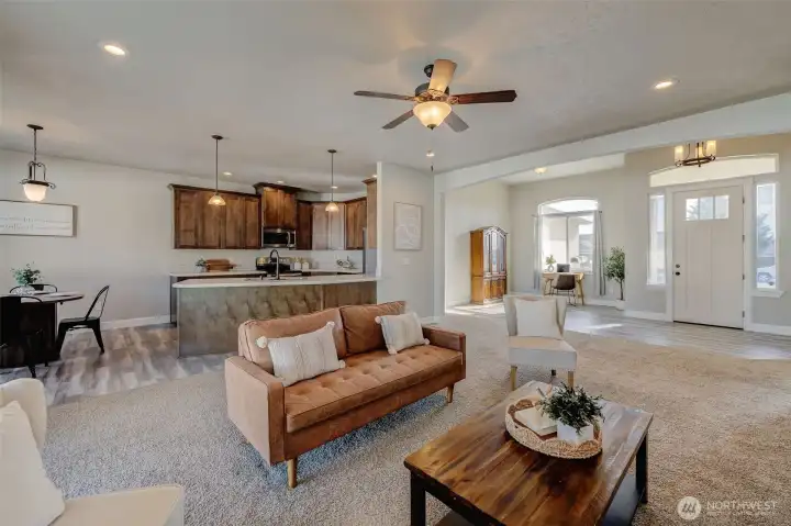 Embrace this beautiful newer construction home featuring 3 bedrooms, 2 bathrooms, and 1868 sqft of thoughtfully designed living space. This inviting single-level home offers a grand entrance featuring a large custom door, spacious open-concept floor plan perfect for modern living and entertaining. The bright kitchen flows seamlessly into the dining and living areas, creating a warm and functional gathering space. The generous primary suite includes a large walk-in closet and private bath. Enjoy outdoor living with a large patio and fully fenced and usable level lot. Additional highlights include an attached garage, walking path to Lauzier Park, being a short distance from the Quincy Medical Center and public market! This move-in ready home offers comfort, style, and everyday convenience. Welcome to 415 R St SW!