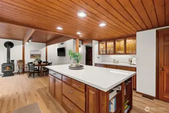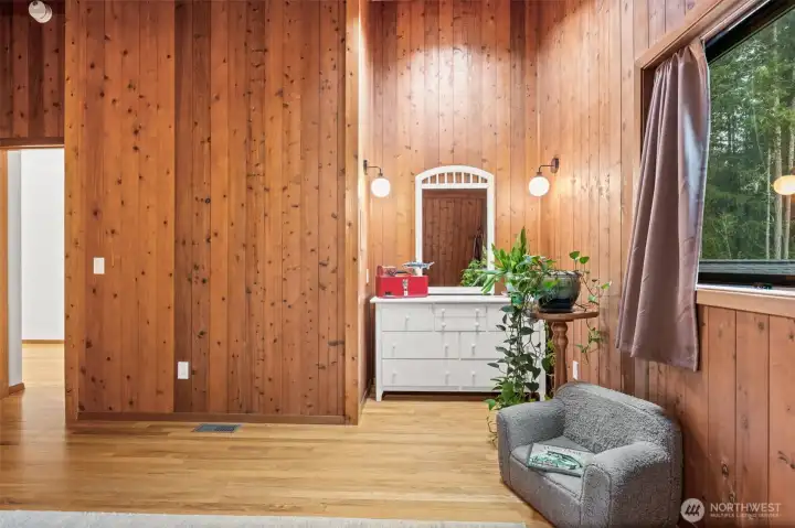 Tucked away on 5 private acres, this charming Lindal Cedar home blends rustic character with relaxed shabby-chic style. Vaulted ceilings, exposed beams, and warm tongue-and-groove plank ceilings create an inviting architectural backdrop filled with natural light. Thoughtfully updated for a modern cabin feel, the home offers all the cozy comforts you'd hope for-from the cracking wood-burning fireplace to spa-inspired bathrooms featuring frameless glass showers and beautiful custom tile-work. Recent improvements include a new roof, gutters, HVAC, and windows, adding peace of mind while preserving the home's timeless charm. Outside, beautifully curated landscaping transforms the grounds into a peaceful oasis surrounded by nature. An impressive outbuilding provides space for up to six vehicles, hobbies, or storage, completing this storybook retreat.