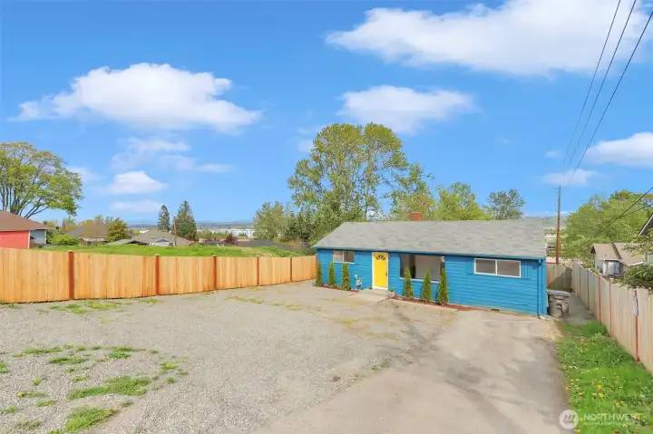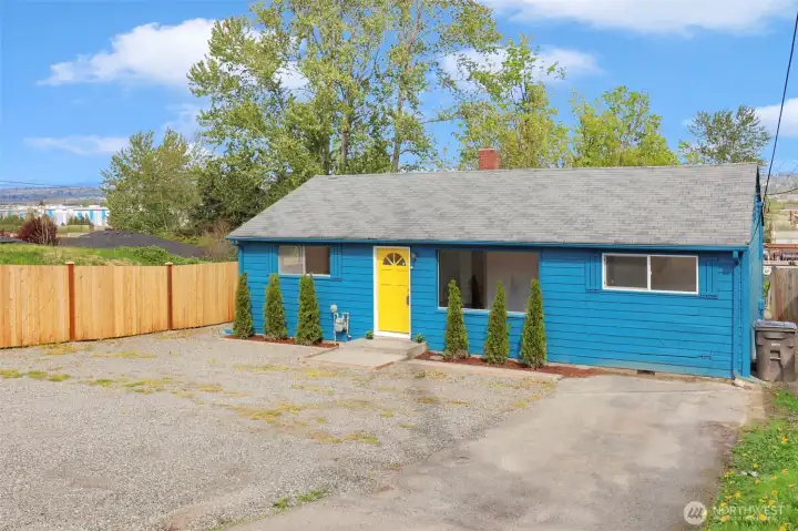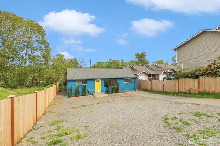 Set on a deep oversized lot with R4 zoning, this one-level home offers privacy, versatility, and exceptional outdoor space. The home sits back from the road with abundant parking, including room for an RV. Inside, large windows fill the home with natural light. The spacious eat-in kitchen enjoys a peaceful backyard view and opens directly to a private deck and patio—perfect for entertaining and completely hidden from the street. Two bedrooms with original hardwood floors and a full bath accompany a flexible open living area. The fully fenced backyard features terraced garden space and multiple wired outbuildings for storage or projects. Fresh exterior paint, siding updates, and new gravel enhance the property. Minutes to highways and everyday amenities.