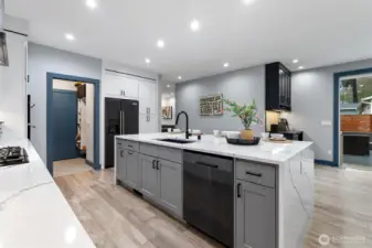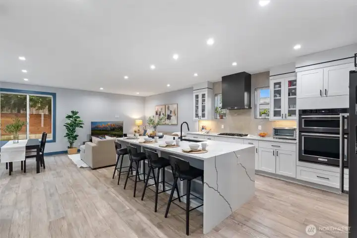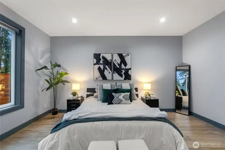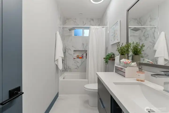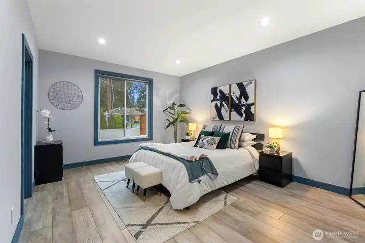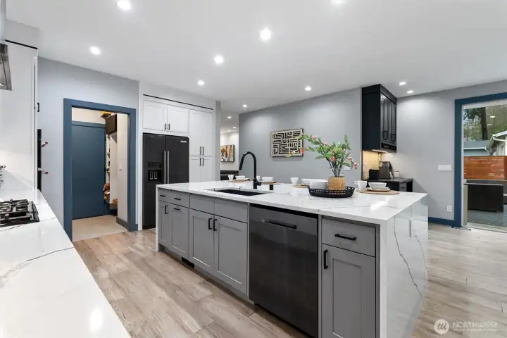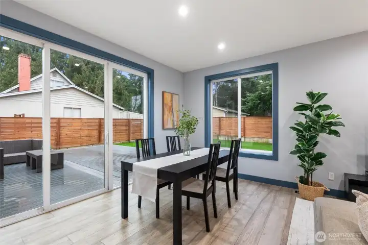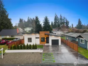 Welcome to this modern, fully remodeled and strikingly beautiful single-family home. Practically new construction without HOA dues or shared walls. This beautiful Mountlake Terrace one level home combines modern design, thoughtful upgrades and flexible living spaces. The contemporary exterior features clean architectural lines with warm wood accents that immediately set this home apart. Inside, soaring 9-ft ceilings, engineered hardwood floors, and an open layout create bright, inviting living spaces. The stunning quartz kitchen with oversized island is designed for gathering, cooking, and entertaining. The extensive remodel includes two new bathrooms with heated floors, a walk in closet on the main bedroom and a cozy fireplace that anchors the living space. This home offers exceptional versatility, including a spacious family room and a fully finished detached shed - ideal for a home office, gym, or studio. Step outside to a large, lush and level backyard and a beautiful maintenance free Trex deck, perfect for entertaining, gardening, or relaxing summer evenings. This home delivers modern finishes, privacy, outdoor space, and true single-family living. Located in the highly regarded Edmonds School District, and just minutes from parks, shopping, commuter routes, and the Mountlake Terrace light rail station, this home offers modern design, space, and privacy without compromise. Move-in ready and designed for today’s lifestyle. Why share walls when you can own the whole house?