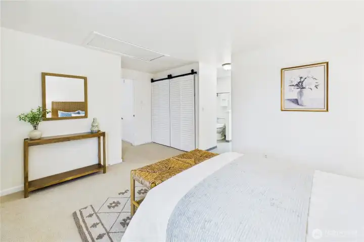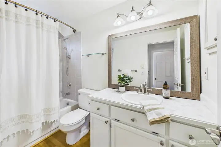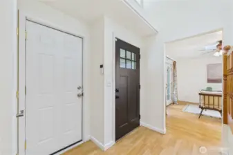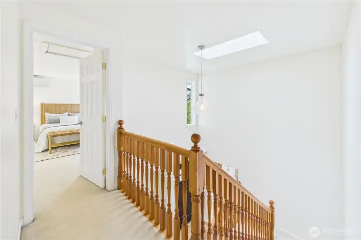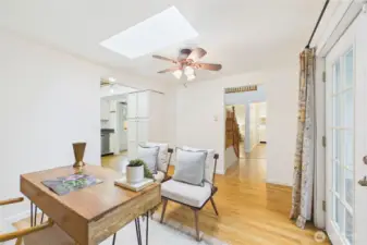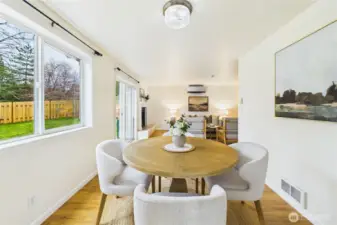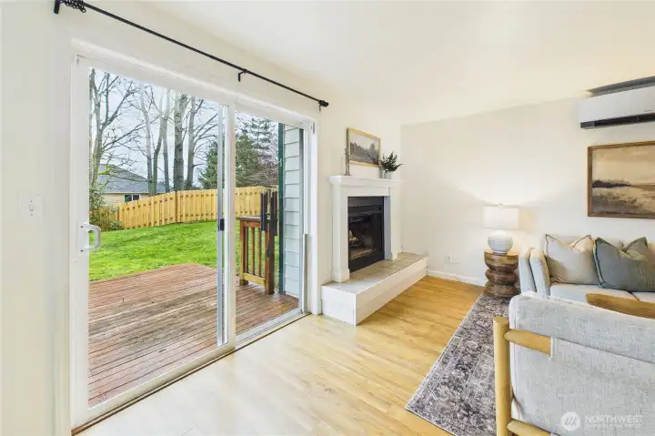 Welcome to the highly sought after neighborhood of Poulsbo Gardens. Offering space, flexibility, and a hard-to-find large lot. 3 bedrooms, 2.5 baths, this home is situated on a level .23 acre lot, and a peek-a-boo view of the Olympics! Ideally located, close to NK schools, and Historic Downtown Poulsbo. The interior has been freshly painted, creating a bright and move-in ready feel. The main level features a vaulted entry with skylight, comfortable living & dining spaces, plus mini-split Heating, and A/C for year-round comfort. Wood burning fireplace for those chilly evenings. Bonus room off the kitchen, with French doors that open to the front entry deck, perfect as a home office, or perhaps creative space. Durable laminate flooring. Stainless appliances in the kitchen. Laundry is conveniently tucked into a closet on the main floor (Washer & Dryer stay!) Upstairs, the spacious primary bedroom with ensuite, features a custom tiled tub/shower, and newer sink vanity with tiled backsplash. Mini-split for heating/cooling. Bedrooms 2 & 3 share a full bath, off the hallway. This home truly offers both location and livability. The fully fenced backyard provides room to garden, play, or relax outdoors, retractable awning on the back deck. Two-car garage, and additional storage shed. As an added bonus, the 95" television currently in the home, stays! A great opportunity for buyers seeking a comfortable home with room to make it their own in a desirable Poulsbo location.