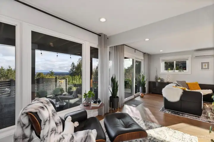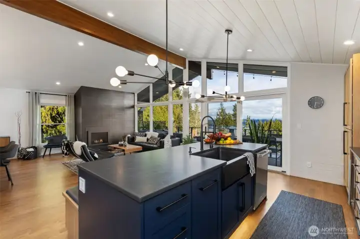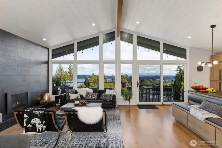 Located in desirable Eldorado Hills, this stunningly remodeled home blends timeless sophistication with modern design. Thoughtfully updated with the finest attention to detail, it features open concept living, vaulted ceilings, skylights, walls of windows with mountain and water views. Luxurious upgrades including gourmet kitchen, hardwood flooring and custom tilework throughout. Upstairs primary bedroom with gorgeous bathroom with walk-in shower and huge closet with built-ins. Guest bedroom also has attached full bathroom and walk-in closet Lower level offers spacious family room, bedroom, utility room and 3/4 bathroom. Immaculately designed landscaping with garden beds, multiple terraces, covered patio, and spacious upper deck to relax and enjoy beautiful view over the Puget Sound. Fully finished outbuilding can be used as an office space or studio, high-speed internet, attached 2-car garage with electric car charging. This is PNW living at its finest!