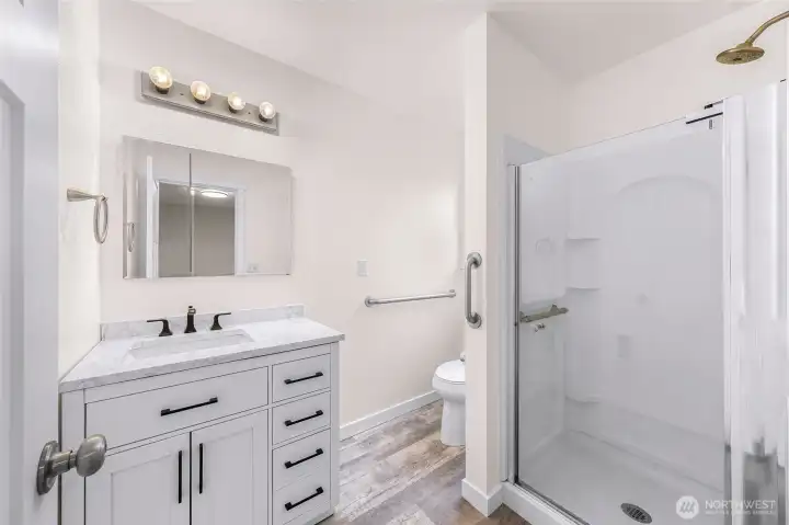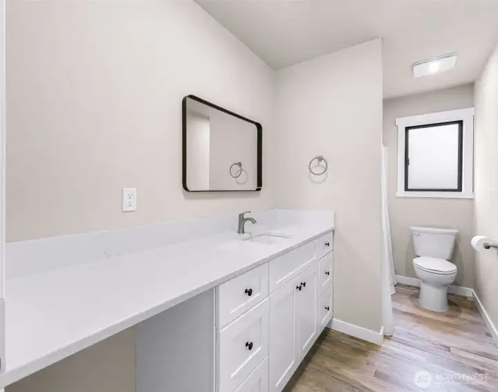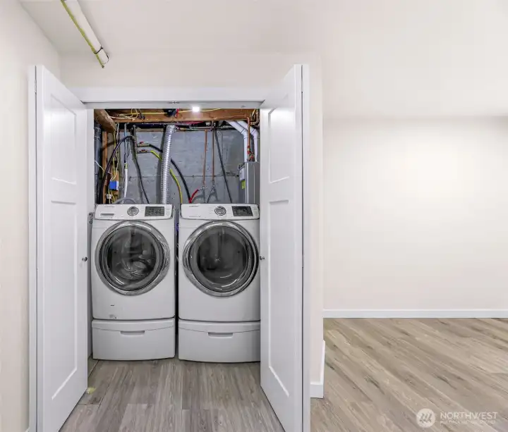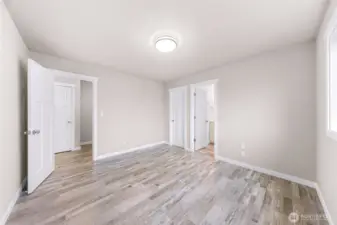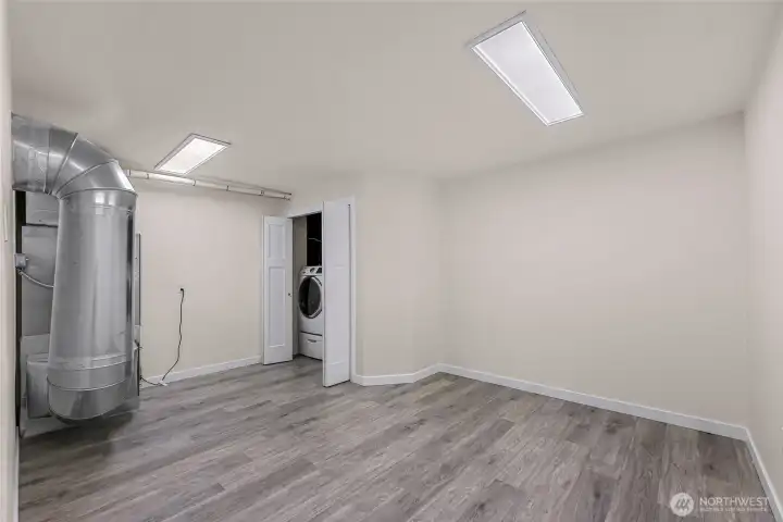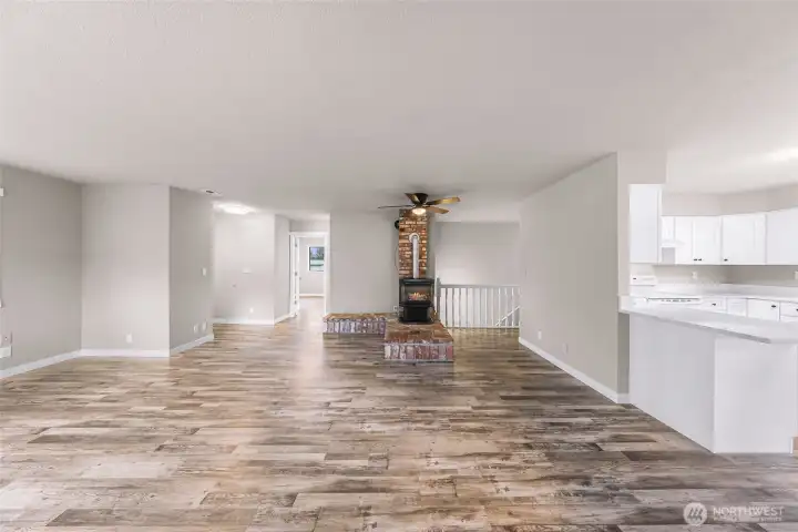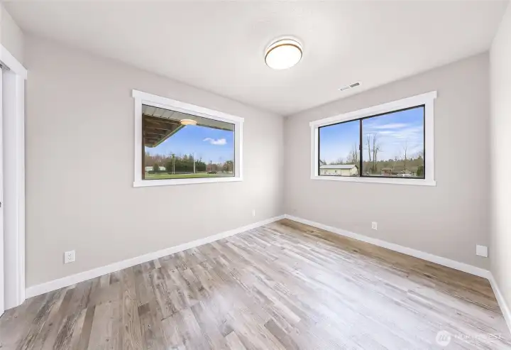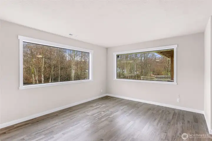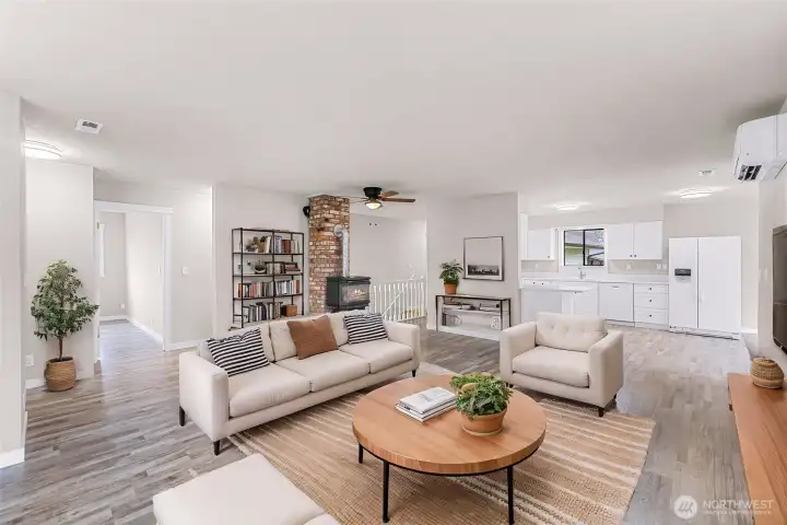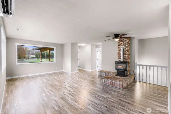 Fresh remodel this year on this 2504 square foot home on 18.5 acres( 2 tax parcels). New flooring, trim, appliances, paint, and quartz countertop. Main floor features 2 bds./1.75 bathrooms and downstairs extended living area or ADU has 2 bds., 2nd br. does not have a window. There is 1 bath, kitchen and separate entry. Property has a large pond(small lake) with a bridge and usable shoreline for fishing and launching kayaks or boats. Large red barn set up for animals and possible storage units as the 8.53 acre is zoned for light industrial. Heat and cooling comes from ductless mini-splits, forced air natural gas, and a free standing gas stove. This property has a lot going for it as far as uses. Rental property with 2 income producing living areas and barn rental, raising of animals as part of the property is fenced. Great location, halfway between Ferndale and Bellingham.