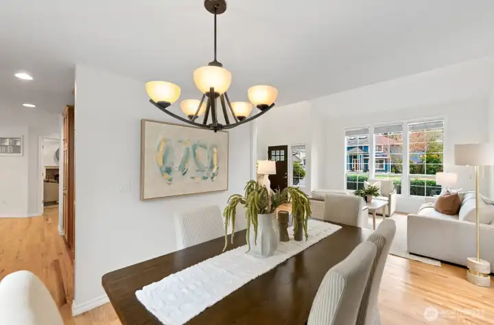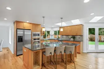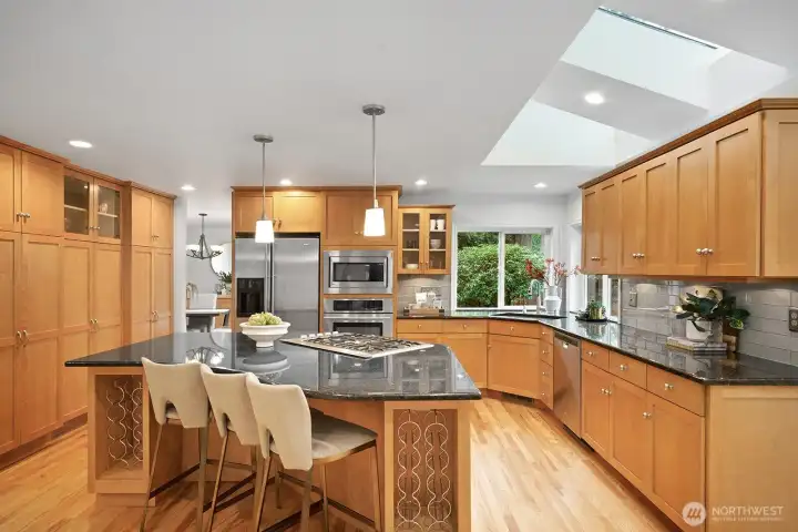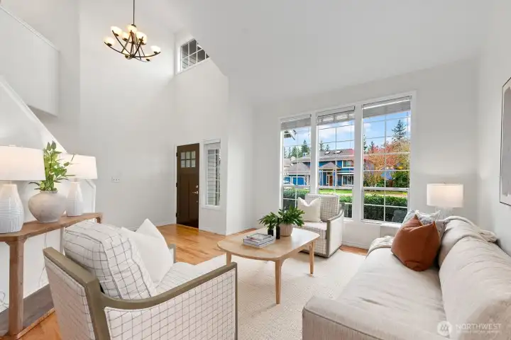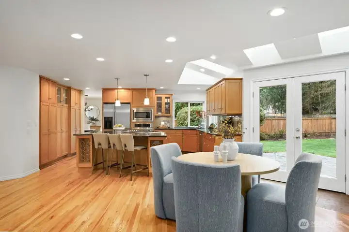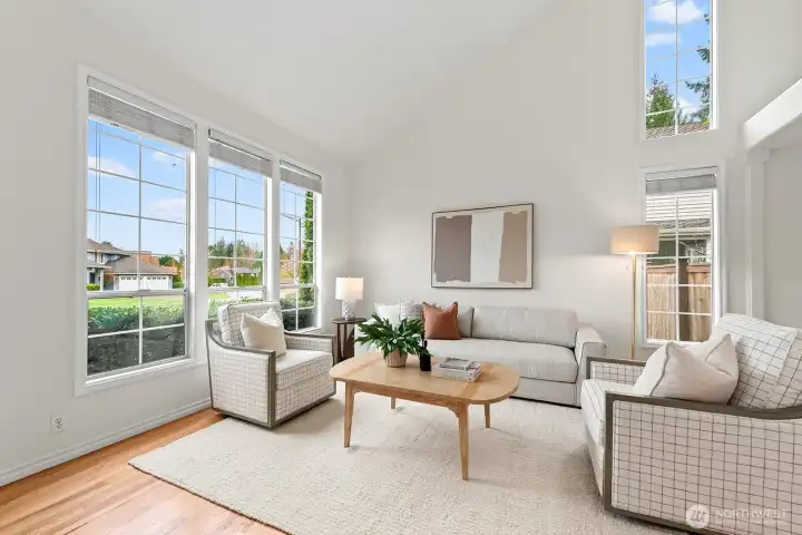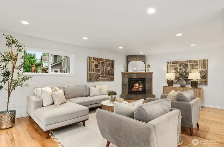 The very best of form and function are on full display in this Summer Ridge stunner! A thoughtful combination of 5 beds and 2.5 baths, paired with the perfect balance of formal and informal living spaces, creates an ideal setting to live, gather, and thrive. Vaulted ceilings in the entry and formal living room create a fresh, airy feel, enhanced by walls of windows that invite abundant natural light. The open-concept layout offers a chef’s kitchen with casual eating bar, additional dining area, and a spacious family room adorned by a natural gas fireplace. French doors open to an expansive patio and fully fenced backyard, creating a seamless connection to the outdoors. A formal dining room, large den, and half bath complete the main level. Upstairs offers five bedrooms (one staged as a rec room), including a grand primary en suite with a walk-in closet and spa-like five piece bath. Recent upgrades include new carpet, refinished real oak hardwood floors, fresh interior paint, and gas hot water tank. Conveniently located one block from Summer Ridge private park, a 10 minute walk to Christa McAuliffe elementary school, and immediate greenbelt access via backyard gate. Close to Microsoft and Amazon campuses, it offers easy access to grocery stores, shops, restaurants, and transit providing everyday convenience while maintaining a peaceful residential feel. All this within the award winning Lake Washington School District. Welcome Home!