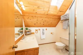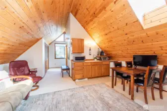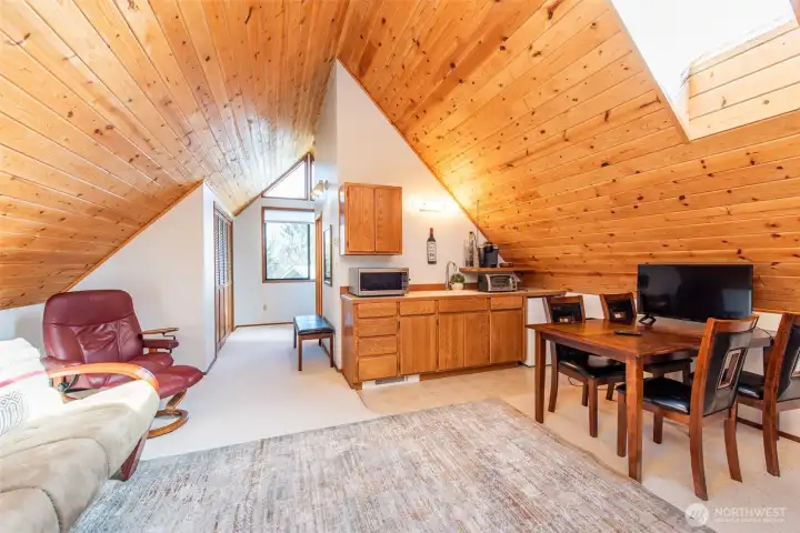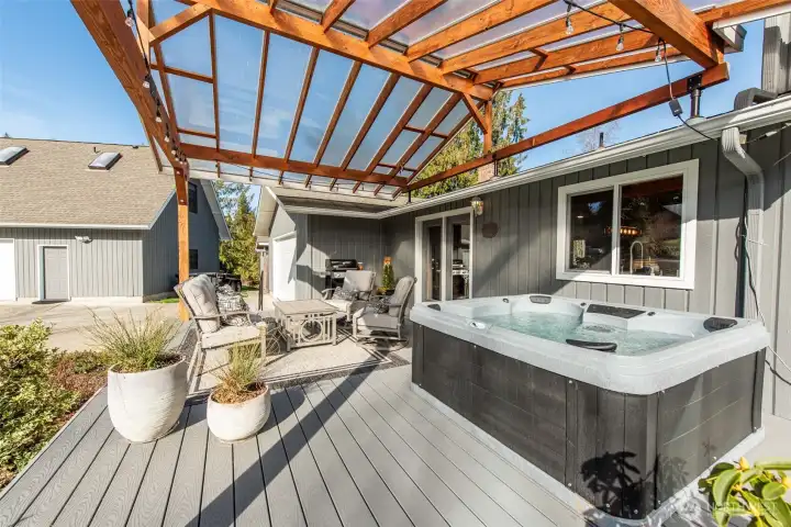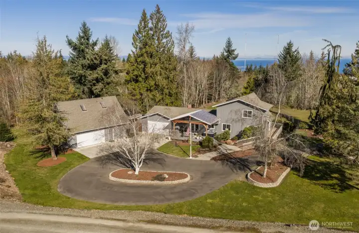 Wake up in a beautiful, custom space surrounded by high-end homes. Your friends will love sharing the spacious kitchen with cozy wood stove, gazing at the well-manicured grounds through floor to ceiling windows, and retreating to their private guest suite. When entertaining has ended, it's time to relax in the hot tub under the new, covered deck, perfect whatever the weather. This wonderful Northwest home has all the extras, from wood-lined ceilings and private main bedroom suite to the large detached garage with dedicated work room and space for all your hobbies and storage needs. A great home for your next adventure! The private studio above the detached garage, which is currently being used as a guest suite, is listed as part of the garage square footage on county records. It is approximately 320 Sq. Ft. and features a complete studio space with a kitchette, eating area, sitting room, and 3/4 bath.