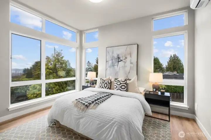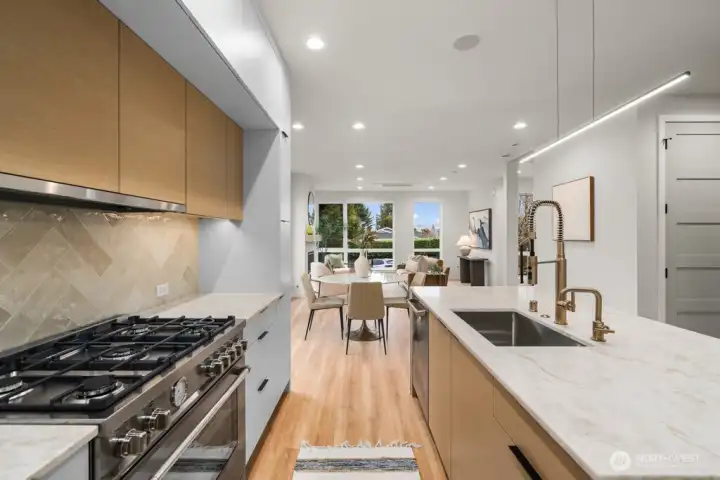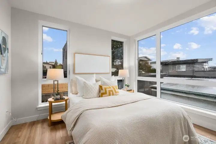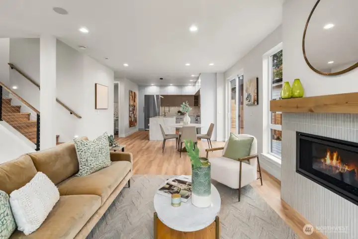 Elevated Minimalism dazzles in this luxurious newly-built residence in beloved West of Market boasting bold, rooftop-deck views and a thoughtful, highly functional 3 Bedroom + Den floor plan. Alluring architecture, Smart details, and distinctive finishes have been painstakingly considered to achieve maximum beauty and utility. European-style cabinetry, Bertazzoni appliances, floor to ceiling windows, colossal walk in shower + matte black soaking tub, A/C, ERV + hybrid hot water tank for improved air quality and increased energy efficiency, Kohler Purist + Aquatru water filtration, SMART home lighting control, in-ceiling speakers in great room + primary bath, under cabinet lighting, radiant heated bathroom floors, oversized laundry with LG Smart Washer/Dryer, detached garage plus parking pad both with EV charging, pre-wired for security cameras, and partially fenced south-facing yard. Join this treasured neighborhood community and benefit from its multitude of sans-car destinations – Waverly Beach, schools, parks, and all the treasures of vibrant Downtown Kirkland. A rare opportunity to own View, New Construction West of Market in the low $2MMs. Welcome to Reserve on 6th.