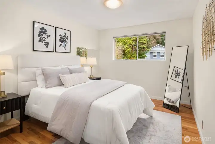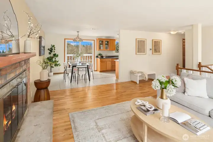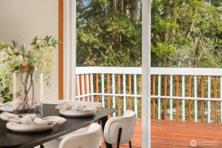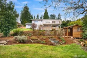 This 5-bedroom home is tucked away on a quiet dead-end street in Bellevue’s sought-after Lake Hills neighborhood. Upon entering, walls of windows flood the home with natural light, creating bright, welcoming spaces throughout. The open-concept main level features a spacious living room with a cozy wood-burning fireplace, perfect for relaxing or gathering with friends. The beautifully remodeled kitchen showcases custom Craftsman cabinetry and stainless steel appliances, and it flows seamlessly into the dining area, where a sliding door opens onto an oversized deck overlooking lush gardens and the Bellevue Urban Garden (tBUG). Three generously sized bedrooms and an updated full bath complete the upper level. The lower level offers flexibility, featuring an oversized bonus room with a sliding door that opens onto a large patio, ready for your summer BBQs and outdoor entertaining. A laundry room, two large bedrooms (ideal for guests or a home office), and another beautifully updated full bathroom finish off this level. Outside, the grounds feel like a natural retreat, with abundant flowering plants and a charming garden shed tucked away in a private setting. Additional highlights include a low-maintenance metal shake roof and a new energy-efficient furnace. Ideally located just minutes to 405, Bellevue Square Mall, a variety of dining options and walk to Lake Hills Greenbelt trails. The home is also served by award-winning Bellevue schools.