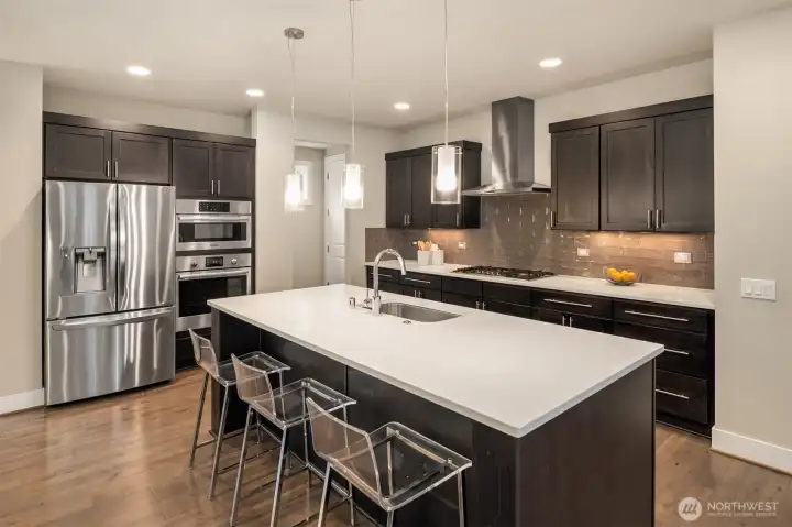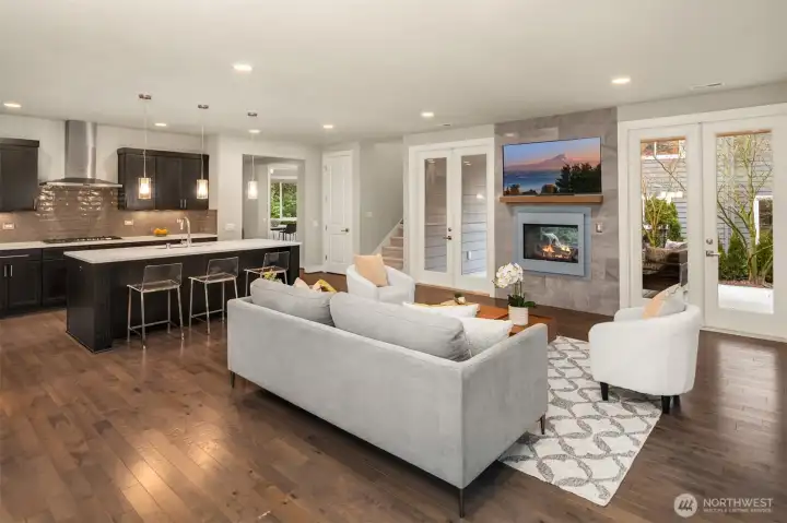 Refined living in highly sought-after North Rose Hill. Designed for modern lifestyles, this stunning home offers a perfect blend of contemporary elegance and functionality—minutes from parks, dining, and shopping, all within the award-winning Lake Washington School District. Step inside to a bright, open-concept main level designed for effortless living and entertaining. Spacious living and dining areas flow seamlessly into a beautifully appointed chef’s kitchen, featuring high-end finishes and a generous walk-in pantry. French doors open to a covered outdoor patio with an indoor/outdoor gas fireplace, perfect for year-round entertaining. Function meets style with a dedicated mudroom off the two-car garage, while a versatile main-level bedroom/office provides the ideal space for guests, or remote work, complemented by a three-quarter bath. Upstairs, a large bonus room offers endless possibilities—whether as a game room or cozy retreat for movie nights. Three spacious beds share a well-appointed full bath, while the expansive primary suite serves as a private sanctuary. Enjoy a luxurious five-piece spa-like bath and a generous walk-in closet designed for both comfort and convenience. An upstairs laundry room adds ease to everyday living. With its sophisticated design, flexible spaces, and prime location near parks, restaurants, and top-rated schools, this North Rose Hill home offers the perfect backdrop for elevated everyday living.