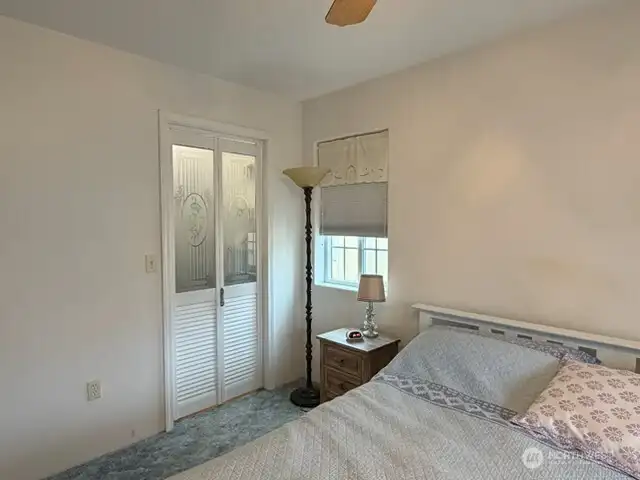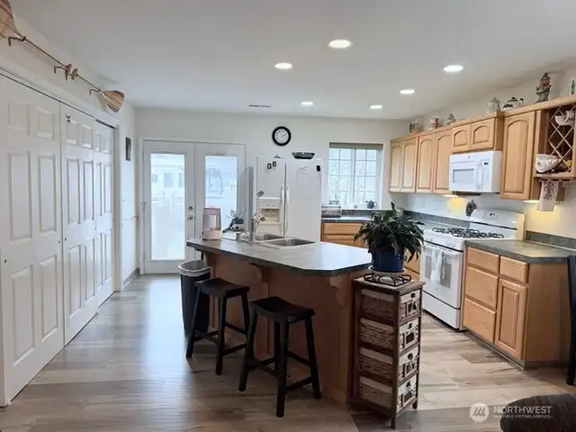 This charming Custom 3 bedroom, 2 bath home, built in 2005, is located in the serene 55+ community of Ryderwood! Step inside to find a spacious kitchen with ample storage, and a propane range, complemented by French doors with built-in blinds. The home features cap lighting throughout, safety bars in both roomy bathrooms, and a convenient laundry chute that connects to both bathrooms. Comfort is ensured year-round with a heat pump and a cozy propane stove, while the 3-year old water heater provides reliable service. Outdoor living is a delight with a newer deck featuring a ramp for accessibility, a front covered porch with durable Trex decking, and an 8x12 storage shed. The property also offers RV parking, making it ideal for those who enjoy travel or hosting guests. Experience peaceful living with all the amenities you need in beautiful Ryderwood!