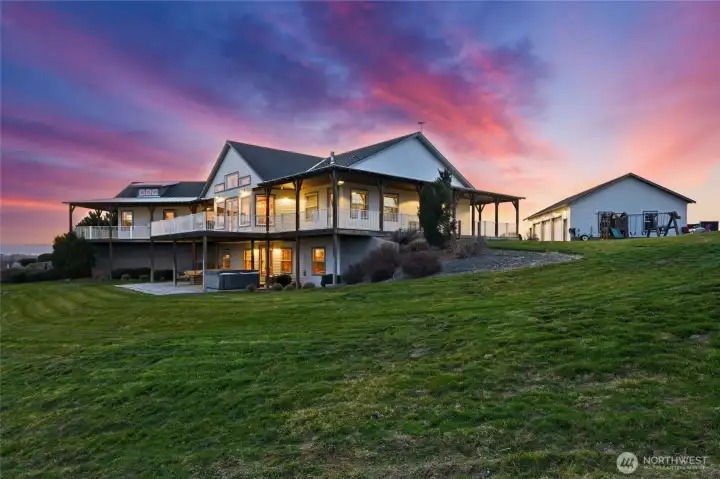 Welcome to this stunning N.W. Contemporary 'Architectural Farm-House Masterpiece', that perfectly marries the warmth of old growth timber w/the beauty of the great outdoors, creating an extraordinary sanctuary. Nestled on a sprawling 36.87 Acres w/Senior Water Rights,' this Estate boasts views of the Blue Mt Range & scenic Walla Walla Valley. As you approach the home, you are greeted by a charming 360-degree wrap-around porch that invites you to explore the 4,145 sq ft home. Step inside, the foyer opens to a grand view across the spacious great-rm & Chief Designed Kitchen, framed by a full bank of southern windows that showcase breathtaking Mt Vista's & overlook an 8+ Acre Vineyard. The reclaimed wood accents have been thoughtfully restored from 1882 & enhance the stairway, barn doors, F.P. mantle, & beams that exude rustic charm. The thoughtfully designed fl plan facilitates effortless entertaining & family living. This remarkable estate features 2 Luxurious Primary Suites, each offering dedicated deck views & spacious walk-in-closets, plus one suite with a handsome fireplace. 3 additional generously sized bd rms provide ample space for everyone. The expansive Acreage is fenced & cross-fenced & features a (2,592' Barn), (2,400' Shop) & (1,344' garage w/work-out gym & work-shop). Truly a once in a lifetime opportunity to own a blend of luxury, nature & functionality. Be sure to request the full Feature List to discover all the exceptional details this property has to offer.