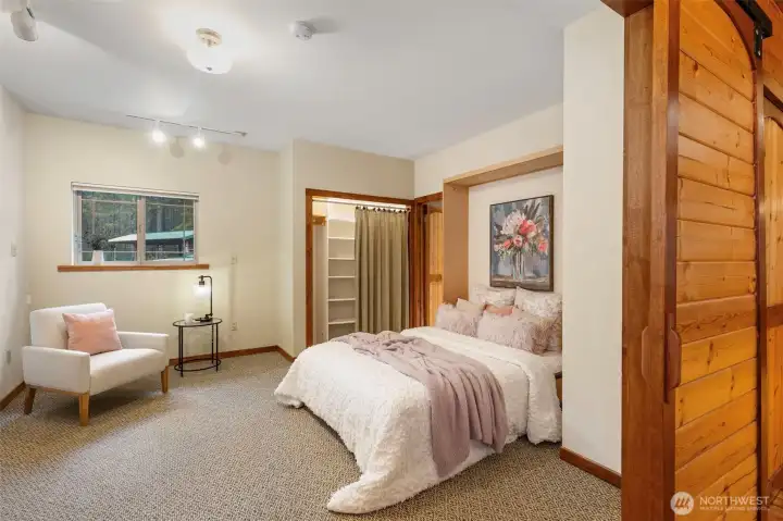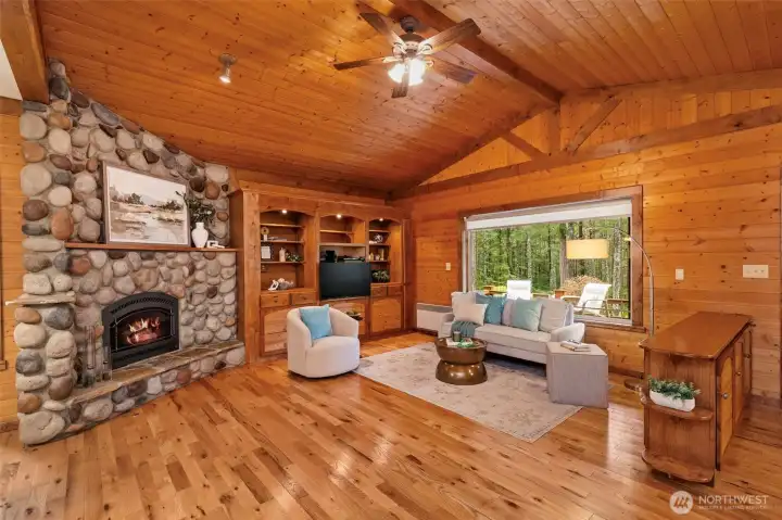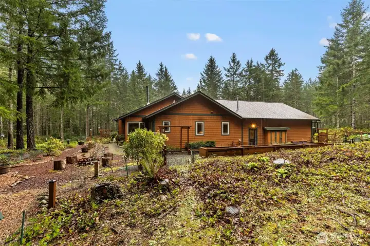 Craftsman fairytale cottage in the woods! Country porch on wood shingle & stone exterior, paved drive from Christopher, then a winding gravel circular drive into peaceful 5 acres will have you expecting more good things! Great room style with beautiful wood floors and cabinetry; kitchen has granite countertops, island and walk-in pantry; stone faced fireplace wall with builtin cabinets. Second bedroom includes a Queen size Murphy bed. Den has stamped concrete flooring and a cozy wood stove. Lots of storage and over 1000sf of garage, split into separate shop with builtins and ventilation a woodworker will adore, plus parking. Another large RV parking structure and an outbuilding for yard equipment and firewood. Raised beds out back make a nice transition into the forest. This home has a 3 bedroom septic system. And, there's a Leaf Filter system installed with a transferable warranty for the gutters. (New roof in 2022)