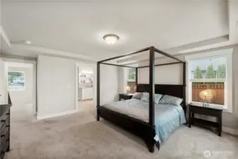 Rare opportunity in the prestigious Pyramid Ridge area of the Tehaleh community, where homes with this much space and privacy seldom become available. Situated on one of the largest lots in the neighborhood—over ½ acre of level, usable property—this home offers an exceptional blend of luxury, functionality, and outdoor living. The backyard is designed for entertaining and relaxation with a 14-foot swim spa, an extended patio with gas grill hookup, dog run, and large storage shed, plus sprinkler systems in both the front and back yards to keep the landscaping lush year-round. Inside, the open-concept main floor features vaulted ceilings, 1-inch quartz countertops, and a massive island with ample seating, creating the perfect space for gathering. Additional main-floor highlights include a bedroom with private bath, den, butler’s pantry, and mud room for everyday convenience. The home features over $80K in upgrades, such as fully wrapped windows and 5-inch trim throughout. Upstairs you’ll find the spacious primary suite with tray ceilings, two additional full bathrooms—including a Jack & Jill bath connecting two bedrooms—and a large loft offering flexible living space. The 3-car garage includes an EV charger plus one insulated bay with a mini-split for heating and cooling, ideal for a workshop, gym, or hobby space. Just a few homes away from a neighborhood trailhead, and located in the Sumner Bonney Lake School District, this home and it's location is as good as it gets!