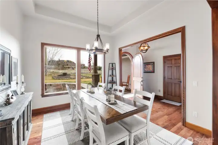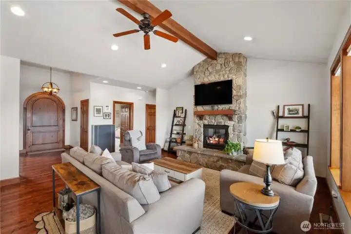 Set on 11.99 picturesque acres in the coveted Cowiche Canyon area, this exceptional property offers refined country living with thoughtfully designed spaces for both relaxation and entertaining. The grounds feature 5 acres of cross fencing, a loafing barn for livestock, and expansive open land that captures the beauty and tranquility of the surrounding landscape. The 1½-story residence showcases timeless craftsmanship with rich oak hardwood floors, matching wood-wrapped windows, and a striking solid wood arched entry door that creates an impressive welcome. The home offers 4 bedrooms, including a serene primary suite with French doors opening to a private patio overlooking the pool. Designed for gathering and entertaining, the home features both living and family rooms, a beautifully open kitchen, and seamless indoor-outdoor living. Step outside to a stunning stamped concrete patio where an in-ground pool with waterfall and hot tub create a true backyard retreat. An upper-level bonus room provides additional flexible space for entertaining, recreation, or a private office. The property also includes an oversized 3-car garage, offering ample space for vehicles, storage, or hobbies. Recent updates include new carpet and fresh interior paint throughout, while solar panels enhance efficiency and modern comfort. A rare opportunity to enjoy space, privacy, and luxury living in one of Yakima’s most desirable rural settings.
