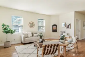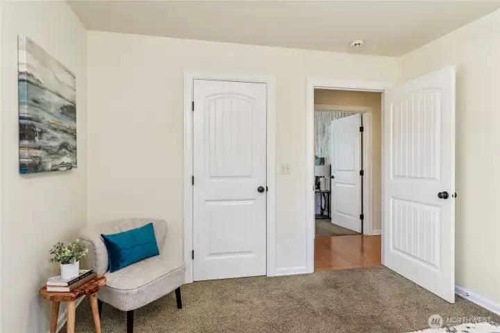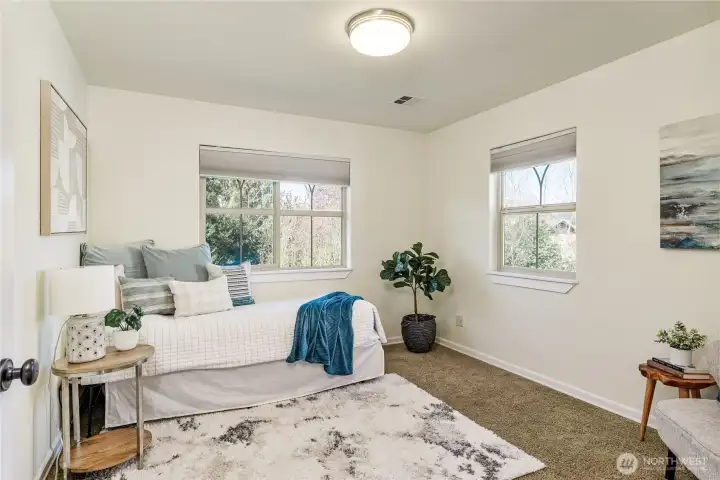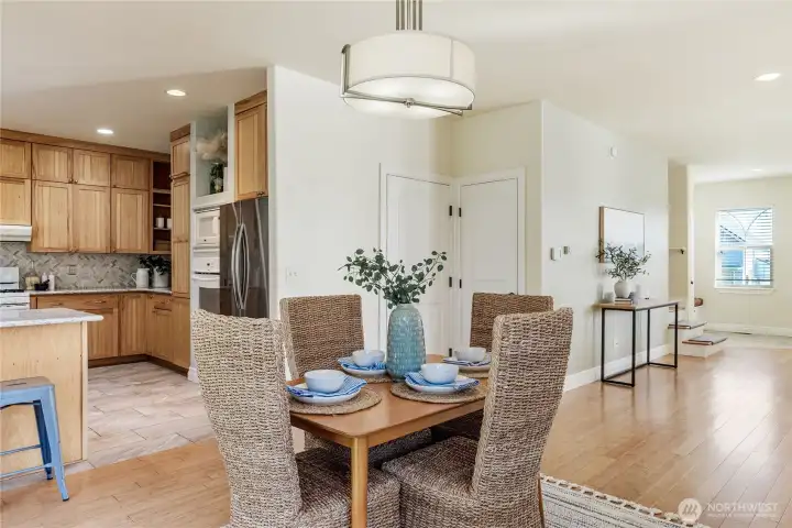 Perfectly positioned in one of Port Townsend’s most desirable neighborhoods, this newer, move-in ready residence blends thoughtful design, quality craftsmanship, and Pacific Northwest style. Mature landscaping creates a private, welcoming setting, enhanced by established fruit trees that bring seasonal beauty and function.Inside, expansive windows, skylights, and tall ceilings fill the open living spaces with natural light, creating a bright, airy atmosphere throughout. Rich bamboo flooring, solid pecan cabinetry, and curated finishes reflect warmth and sophistication. A propane fireplace anchors the main living area, offering comfort and ambiance year-round. The well-designed floor plan features three generously sized bedrooms, a designated office, and 2.5 baths, offering flexibility for a variety of lifestyles. The spacious primary suite is a true retreat, complete with vaulted ceilings, abundant natural light, and a serene atmosphere. Select upstairs rooms capture partial views of Port Townsend Bay and the Cascade Mountains, providing a scenic backdrop. A rare highlight is the fully customized home gym, converted from the garage into a professionally designed fitness studio tailored for performance and convenience. An energy-efficient heat pump ensures year-round comfort, while abundant storage and a thoughtful layout enhance everyday living.Ideally located and impeccably maintained, this home offers comfort, functionality, and elevated living in a truly special setting.