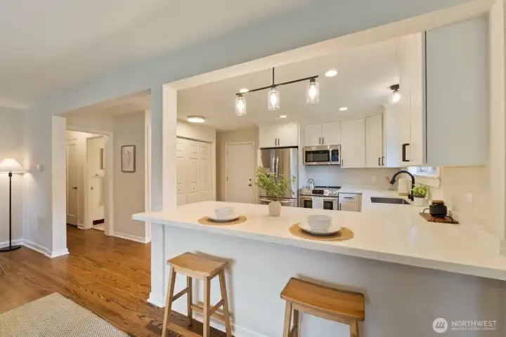 **Charming mid-century rambler in Broadview.** This 3BD, 1BA home features hardwood floors, a cozy living-room fireplace, and a beautifully remodeled kitchen with stainless steel appliances, quartz counters, and white shaker cabinets. Enjoy off-street parking and easy access to nearby shops, parks, and everyday amenities. A warm, inviting home in one of Seattleās most peaceful neighborhoods.
