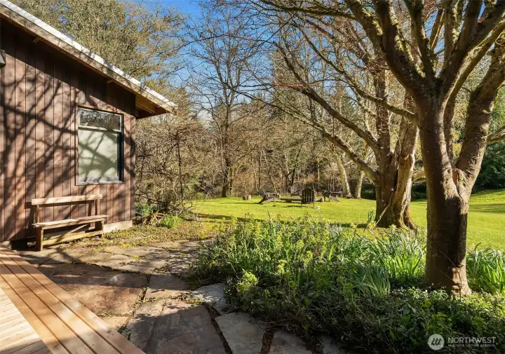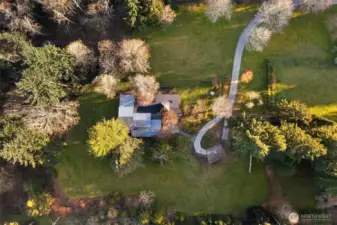 On the Northend of Vashon Island, behold an uncommon union of intentional design and refined living, gracefully situated on 4 rolling acres. Striking architecture unfolds upon approach, surrounding by a tapestry of greenery on the cusp of bloom. A stone courtyard opens to a substantial cedar clad covered entry. Inside, A parade of panoramic windows invite abundant natural light in every season. Tailored embellishments inspire interest at every turn! The kitchen is renowned Henrybuilt, marrying craft design and pragmatic innovation. A curated suite of integrated appliances by Miele, Gaggenau, Sub Zero, balance the interior linear composition. A continuity of subtle woodwork and cabinetry echos Northwest, minimalist architecture from room to room. Designed for enduring comfort, the dining area anchors daily living, flowing effortlessly to a living room crowned by a dramatic vault, a private den and sitting room, and an understated primary suite in the south east corner. Outside, the landscape unfolds into a sequence of moments that delight and engage the senses, from meandering meadows to a fruiting orchard, all bordered by forest and a quiet walking path. New cedar decks, Cherry Creek windows, and an attached shop host space for projects and storage, all connected by a circle drive for easy egress. Here, a convergence of passion and uncompromising vision, perfectly situated for an alignment of lifestyle and expression.