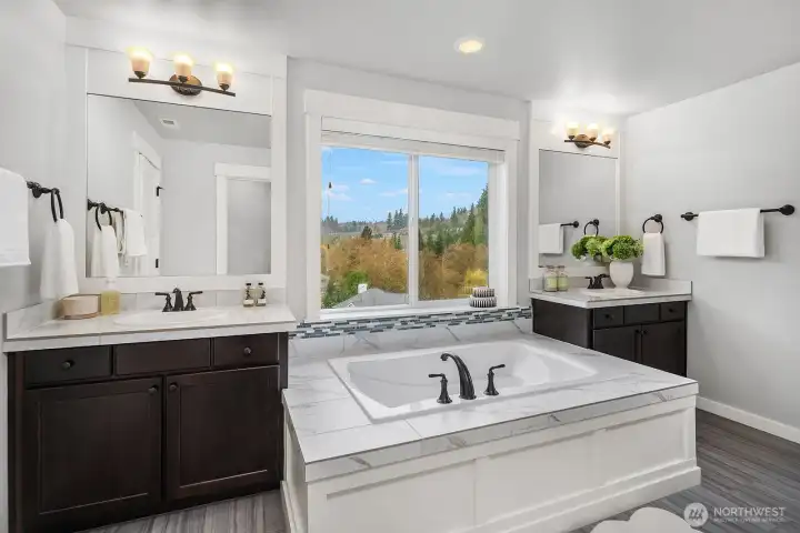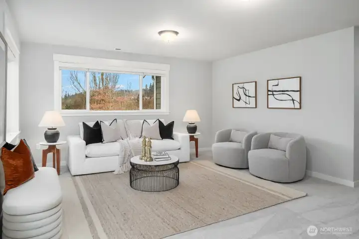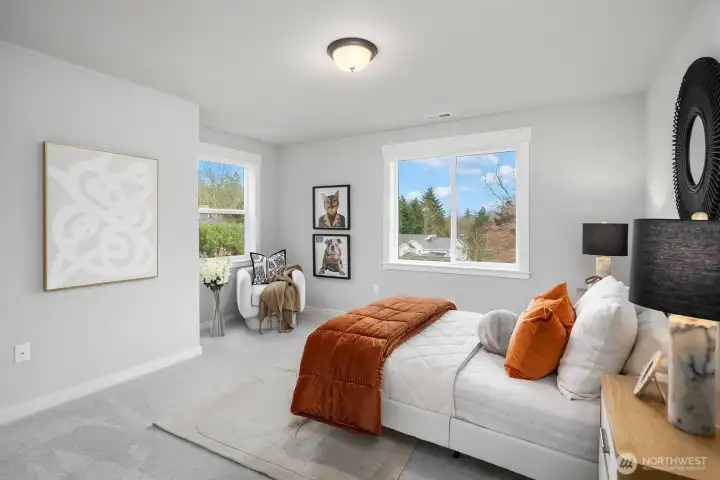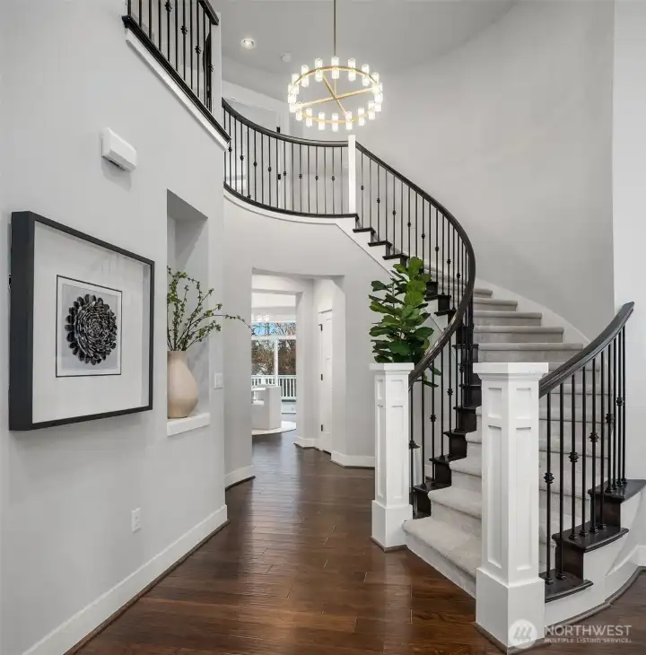 Welcome to Piper’s Glen - a prestigious Toll Brothers community in a prime Bothell location. Modern architectural precision meets unparalleled luxury in this 5,000+ SF home. A grand spiral staircase and soaring ceilings greet you at the entry, while sun-kissed light fills the home through dramatic walls of picturesque windows with scenic views. The chef’s kitchen is a focal point, featuring quartz countertops, high-end appliances, and an entertainment-sized island. Host legendary gatherings in the elegant dining room or the morning nook, which flows seamlessly to an expansive deck. Thoughtfully designed for the modern lifestyle, the main floor includes a guest bedroom or expansive home office. Retreat to the primary sanctuary upstairs, complete with a spa-inspired 5-piece bath and walk-in closet. 3 generously sized secondary bedrooms and spacious loft perfect the upper level. The fully finished daylight basement offers a vast multi-purpose bonus room with patio access, an additional bedroom, and a bath. Equipped with Central A/C and a 3-car garage with an integrated EV charger. Located in the award-winning Northshore School District. Easy access to I-405 & 522, Totem Lake Shopping Center & Juanita Beach. Short commute to Kirkland & Bellevue DT.