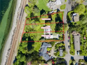 ***** 170' linear feet of high-bank Puget Sound waterfront...! ***** Perched up high above the Puget Sound waterfront, this 3-lot short-plat opportunity presents sweeping, unobstructed views of the Salish Sea with the majestic Olympic Mountains rising in the distance. The seller has completed a feasibility study and preapplication meeting with the city to verify density, setbacks, access, stormwater, and soils. All utilities in the street. Two options: subdivide to three ~65’ wide lots or two ~100’ wide lots. Highest and best use would presumably include DADUs over garages near the street, with the primary residences facing the water. All trees impacting building sites or views can be removed. Zero view obstruction now or forevermore by power lines, trees, and/or other structures. Two existing dwelling units are habitable and can be rented out while you make your plans. A lifetime of hypnotic sunsets awaits...!