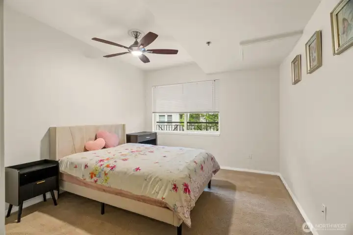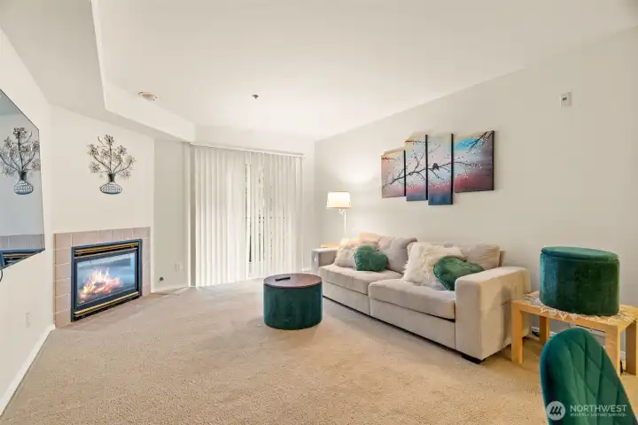 Beautiful 2 BD/2BA 2nd-level condo in Maxwell Place, located right in the heart of downtown Redmond! Walk to everywhere, light rail, transit station, many parks, trails, entertainment, shop and food. Spacious Living Room opens to private balcony, enjoy your relax time in front of gas fireplace. Spacious Living Room opens to big private balcony. Primary suite has a walk-in closet, en suite bath & a private patio entrance. The guest bedrooms with newly remodeled bath on hallway. Laundry and water heater in-unit. Secure elevator building with 1 parking space & storage, rooftop terrace with view of mountains & city. Strong & well-managed HOA. HOA covers water/sewer/garbage/fireplace gas/earthquake insurance. No rental cap.