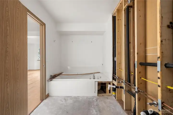 Spacious, updated home with a versatile layout and great indoor-outdoor living in a desirable Bonney Lake neighborhood. The upstairs offers a large open-concept great room and a beautiful kitchen with abundant storage, peninsula seating, a generous dining area, and a cozy gas fireplace. Two sizable bedrooms are located on the upper level, including a junior primary suite. Downstairs features a spacious primary suite, complete with potential 5-piece ensuite - the primary bathroom has been taken to the studs. Sliding doors in the primary open to a private patio with a hot tub, fire pit, and seating area—perfect for relaxing or entertaining. The home is in great condition - strong opportunity for investors or buyers willing to complete remediation. This property is a short sale and offers a chance to purchase in a highly desirable Bonney Lake location with convenient access to shopping, dining, and commuting routes.