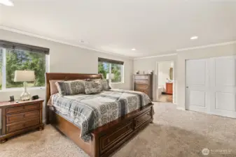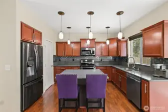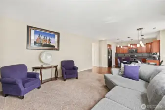 Built in 2013 and impeccably maintained by its original owner, this turnkey Spanaway home offers space, style, and functionality! Featuring 4 bedrooms + office & 2.5 baths, there’s room for everyone to live comfortably. The main level features an updated kitchen with quartz countertops, tiled backsplash, and a newer stainless steel appliance package, all flowing seamlessly into the open-concept living room anchored by a striking fully tiled fireplace. An additional main-floor room provides flexibility for a home office, playroom, or guest bedroom. Upstairs, unwind in a truly expansive primary retreat — double the size of most — complete with two closets and a private en-suite bath with soaking tub. Three additional bedrooms, a full bath, and a dedicated laundry room complete the upper level. Enjoy summer evenings on the extended covered patio overlooking a fully fenced backyard, with low-maintenance turf in both the front and back for year-round ease. Conveniently located near JBLM, shopping, dining, and everyday amenities, this move-in-ready home blends comfort, convenience, and thoughtful updates throughout.