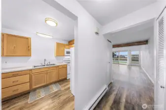 RARE Downtown Coupeville condo! A true island treasure under $400K in the heart of one of Washington’s most beloved seaside towns. Wake slowly with coffee on your private balcony as the sun rises over Penn Cove and seabirds drift across the morning sky. Opportunities like this come along only rarely. Just a short stroll brings you to Coupeville’s charming waterfront shops, cafés, library, parks, and the iconic historic wharf. Leave the car behind and enjoy the simple rhythm of village life. Partake in local coffee, enjoy the many wonderful festivals, and watch boats and eagles glide every day! Inside, the home blends warmth and comfort with many thoughtful updates. Easy-care luxury vinyl plank flooring flows through the living spaces, accented by a striking Northwest-style wood beam. The kitchen was tastefully refreshed just four years ago and offers efficient functionality for everyday living. Two generous bedrooms and a bright, inviting bath complete the layout. All appliances stay, making this home truly move-in ready. Two parking spaces are included, though with everything so close you may rarely need them. A nearby boat launch, beaches, and parks invite endless days of exploring Penn Cove and Whidbey’s shoreline. A rare chance to own a peaceful piece of island life in historic Coupeville—relaxed, scenic, and simply magical.