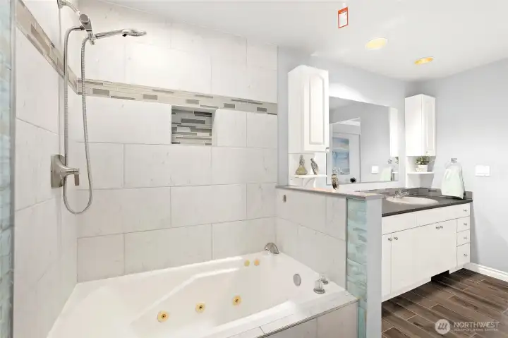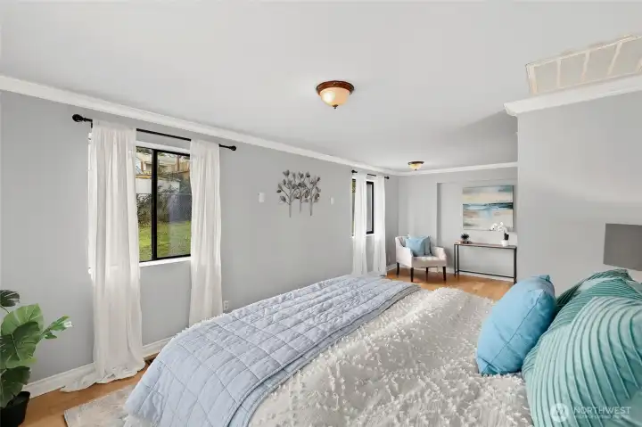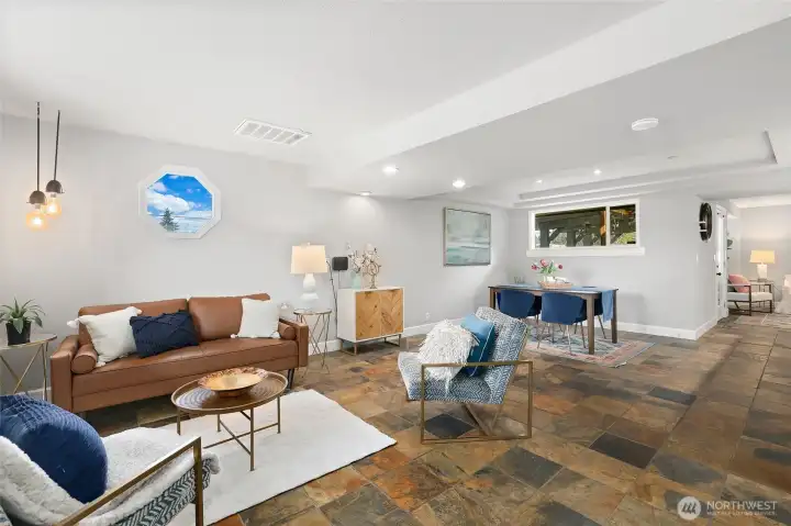 Discover a truly unique home in the sought-after North Hill neighborhood of Des Moines! This spacious residence offers 6 bedrooms, 2.5 bathrooms, and multiple living areas designed for comfort and flexibility. The open-concept kitchen shines with granite counters, white cabinetry, and included stainless steel appliances. Two bedrooms are on the main level, including a relaxing primary suite with a jetted tub, plus a convenient main-level office. The oversized attached garage includes EV charging and space for storage or a workshop. Enjoy gated front and back yards, a covered and gated patio, and a large corner lot with plenty of room for gardening. Cat 5 wiring throughout, new electrical panel (2025), newer furnace (2020), and tankless water heater (2024). Plus RV parking! Close to the Des Moines Marina and the light rail station—this is no cookie-cutter home, it's a must-see!