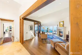 Set on two private acres overlooking the water with direct waterfront access via Guemes Trail, this waterside estate captures 220-degree views across eight islands, the Canadian Coast Mountains, and ferries moving through Thatcher Pass beneath unforgettable sunsets. Thoughtfully remodeled with a focus on architectural distinctiveness and enduring materials, the home balances distinctive design elements with its extraordinary coastal setting. Italian stone surrounds 8 gas fireplaces, with reclaimed European oak ceilings, floors and beams. Walls of windows frame the changing seascape, bringing natural light and expansive views. The main-level primary suite offers a private retreat with a spacious bath featuring an English copper soaking tub, solarium, fireplace, and reading area. An elevator connects all levels, leading to an upper private office with an eagle’s-eye view and balcony, and to the lower-level guest quarters and recreation spaces including sauna, exercise room, media room, game room, wine storage, and patios with hot tub. Every room has a water view, even the garage. A wraparound deck spanning three sides offers the perfect vantage point for pink sunrises. Rare tumbled travertine marble appears throughout, plus a heated seven-car garage and separate heated workshop. A coastal estate where craftsmanship, privacy, and sweeping island views come together in one extraordinary setting.