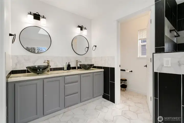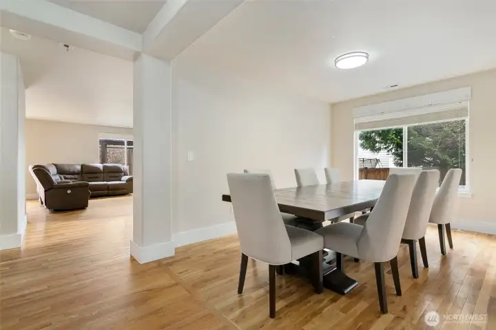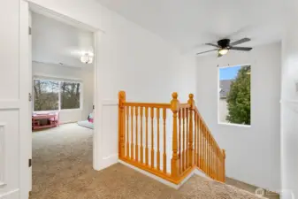 Tucked into a private setting in the desirable Devonshire community, this beautifully updated 5 bedroom home offers the ideal blend of comfort, space, and style with generous sized rooms throughout. The open concept kitchen shines with crisp white cabinetry, a full tile backsplash, generous eat at island, pantry, and abundant counter space, all flowing seamlessly into the inviting living area with a cozy fireplace and plenty of natural light. Real hardwood floors and ceramic tile add warmth, character, and durability to the main living spaces. The spacious primary suite is a true retreat featuring a fully updated 5 piece bath with custom walk in shower, soaking tub, and dual walk in closets designed for easy organization. Downstairs you will find a dedicated office and a comfortable pajama lounge, offering flexible space for remote work, movie nights, hobbies, or multigenerational living. Stay cool all summer with A/C and enjoy outdoor living in the expansive backyard complete with a deck and firepit area, perfect for entertaining guests or relaxing under the stars. A full attic with easy access provides exceptional storage. With a new roof and gutters installed in 2020 and a prime Puyallup location close to parks, schools, dining, shopping, and everyday conveniences, this home truly checks all the boxes.