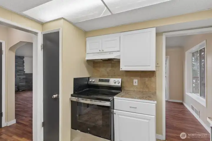 Vintage home with some recent upgrades. Fairly large lot, sloped with concrete slab in back yard for sports ect. Large deck provides opportunity for outdoor living space. 4 bedrooms and 2 living spaces with bathrooms on main and basement level. 2 bedrooms on the top floor. Home will get exterior paint and new vinyl in kitchen area ( you could choose if in time ) This is a great starter home and is close to downtown area, ferries and Bangor Base. Yard is a blank canvas with large Fir trees to provide shade on warm summer days. Electric furnace is new.