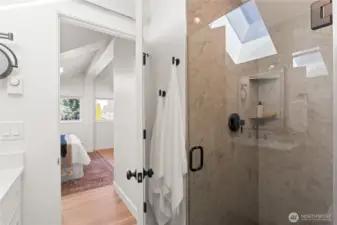 Completely rebuilt from the studs, this beautifully redesigned home lives like new and offers quality craftsmanship throughout. Built by Hindman Construction, the home features 3 bedrooms, 2 bathrooms, and 1,000 square feet of efficient living space with thoughtfully incorporated storage. Fully renovated to 2025 energy standards, it includes upgraded insulation, air sealing, and soundproofing between floors and bathroom walls. High-quality finishes feature custom cabinetry, quartz countertops, solid core doors, smooth wall drywall, lighted mirrors, and durable Gaia luxury vinyl plank flooring with a 50-year warranty. Modern systems include energy-efficient appliances, a new HVAC system with air conditioning, and cove heaters in the bedrooms for added comfort. Enjoy a private, fenced yard and covered porch for year-round outdoor living, all just minutes from downtown Bellingham, I-5 access, and a short walk to Little Squalicum Beach and the Interurban Trail. This home was thoughtfully rebuilt with a focus on quality, efficiency, and long-term durability.