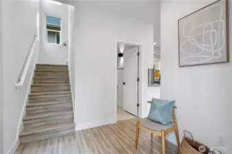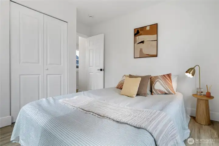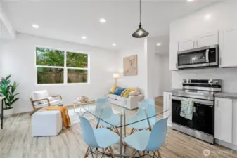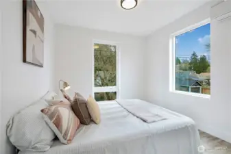 Almost new - and even better than new! This beautifully maintained 1-year-old modern stand-alone home in Mt. Baker includes all window coverings and appliances, making it truly move-in ready. Tucked away off a quiet back alley in a peaceful community, this stylish 2-bedroom, 2-bath home offers a cute private yard and dedicated off-street parking. Vaulted ceiling greets you at the entry, creating an airy, light-filled welcome. Enjoy year-round comfort with ductless mini-split heating and cooling. The main level features a bright living room, a spacious kitchen and dining area with quartz countertops, s/s appliances, and a full bath. Upstairs, you'll find a generous primary suite with two walk-in closets and a private bath with double sinks, plus an additional guest bedroom and full-size laundry. Ideally located within walking distance to the Mt. Baker Light Rail station, parks, restaurants, grocery stores, and Lake Washington beaches. Just minutes to I-5 and I-90. Peaceful yet incredibly convenient — experience the very best of Seattle living. No rental restrictions.
