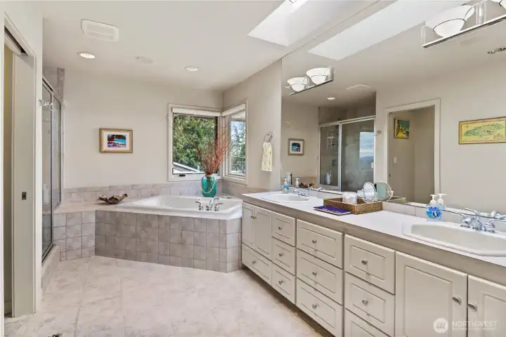 Spacious and stately NW Contemporary home in the heart of Houghton! Nestled in one of Kirkland's most desirable neighborhoods, this exceptional residence offers an elevated blend of comfort, functionality, timeless design, privacy, & sophisticated Pacific Northwest living. The expansive main floor features a grand entry, versatile large bedroom or home office, 3/4 bath, large laundry room, elegant family room with soaring ceilings, and living & dining rooms flowing seamlessly around the kitchen. Chef's kitchen features Wolf double ovens & cooktop, Subzero refrigerator & 147-bottle wine fridge, Bosch dishwasher, large granite waterfall island, abundant cabinetry & ample counter space. French doors off the kitchen lead to deck & fully-fenced backyard. The upper floor boasts a serene primary suite with large sitting area, fireplace, 5-piece bath & views of the Lake, City & Mountains! The upper floor is complimented by two additional bedrooms & a bonus room for home office, media room or wellness space that leads to the deck with incredible Lake views! Spacious 3-car garage with lots of storage, A/C, and manicured landscaping throughout. Ideally positioned just minutes from the shores of Lake Washington, this home boasts a premier Eastside location with effortless access to the vibrant waterfront lifestyle that defines downtown Kirkland! Close to schools, shopping, parks, Cross Kirkland Corridor Trail, Carillon Point, Google, downtown Kirkland/Bellevue, & quick access to 405/520!