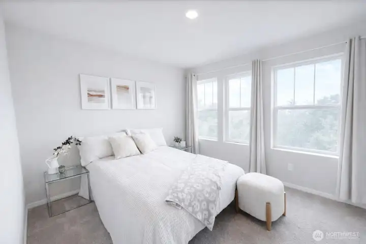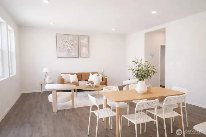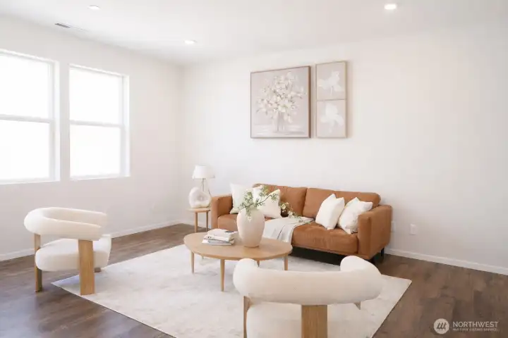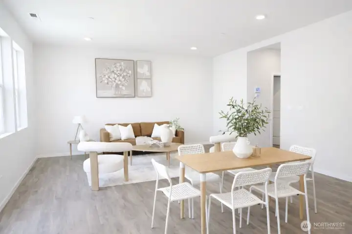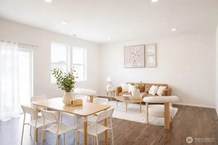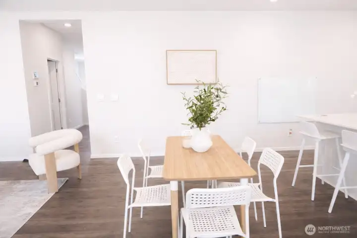 Welcome to the highly sought-after Addington plan at Blue Meadows by D.R. Horton, a beautifully maintained home where the owner has taken exceptional care of every detail. This bright and modern home features an inviting open-concept layout designed for comfortable living and effortless entertaining. The spacious great room flows seamlessly into a stylish kitchen with a breakfast bar, casual dining area, quartz countertops, gas cooking, and elegant white cabinetry, creating a fresh and sophisticated space at the heart of the home. Upstairs, retreat to the relaxing primary suite with a private bath and generous walk-in closet, along with two additional bedrooms perfect for guests or a home office. Step outside to enjoy the large landscaped backyard, ideal for gatherings, gardening, or simply unwinding after a long day. The home also offers the convenience of a 2-car garage and Smart Home features for modern comfort and efficiency. Ideally located in the desirable Blue Meadows community, just minutes from Kent Station, Kent Hill Plaza, Lake Meridian Park, ShoWare Center, shopping, dining, and entertainment. With easy access to Metro Rail and major freeways, commuting to Seattle, Bellevue, and surrounding areas is simple and convenient. A perfect blend of location, comfort, and style—this home is truly move-in ready.