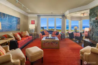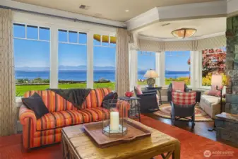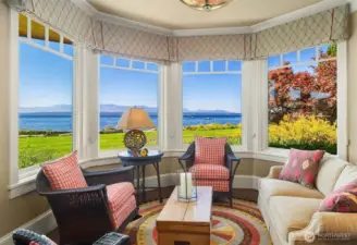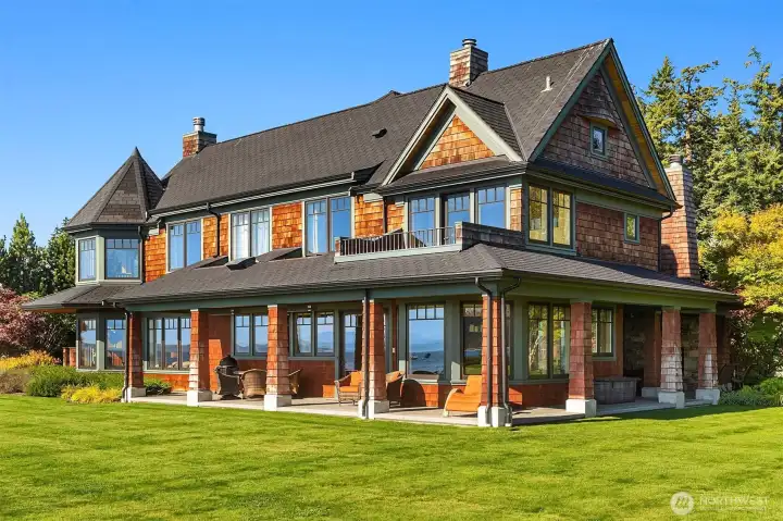 Where timeless elegance meets the sea, with 133 ft of private, no-bank, soft sandy beachfront on iconic Mutiny Bay, framed by sweeping views of Puget Sound and the Olympic Mountains. A refined estate with tasteful curated interiors, and a detached carriage house with additional entertaining space on one plus acre of pristine, gated grounds. Two beautiful structures, 7,000 sqft of exceptional living space, 2,500 sqft of garage and storage. Fully furnished and sold turnkey- an extraordinary offering, on the Islands most coveted shoreline.